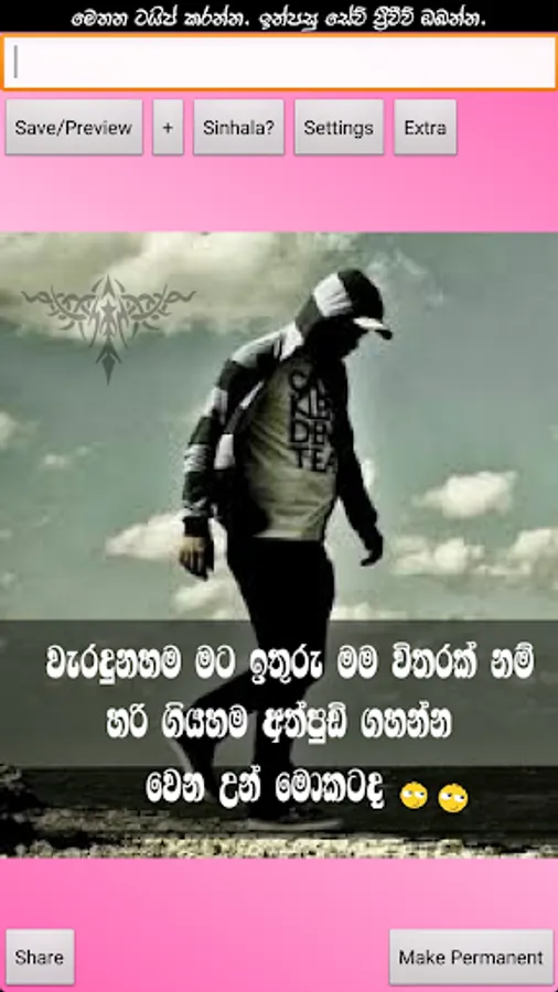 + Create Photos With Sinhala Quotes And Can Express your love feelings With Love Quotes.