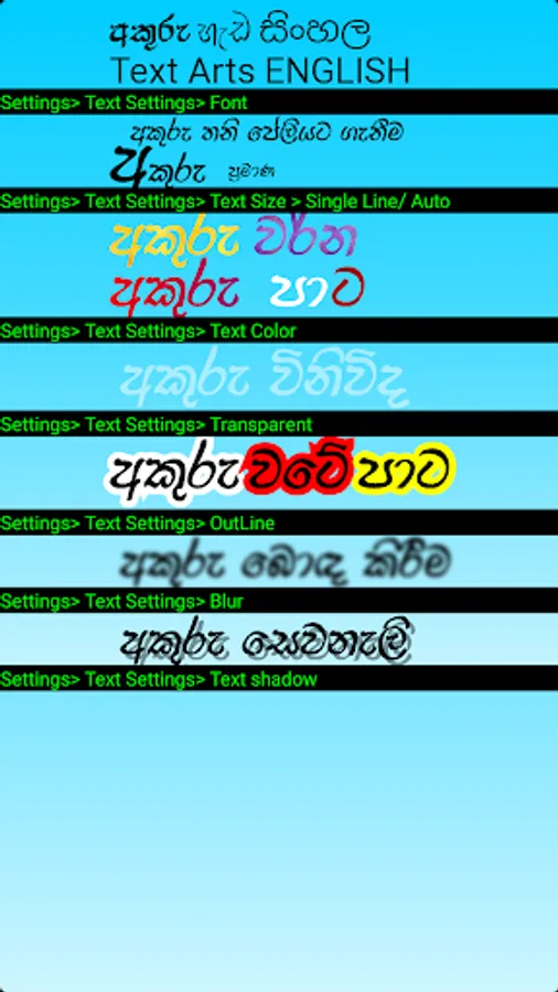 + Style Sinhala Photos and can use custom Fonts from your storage.