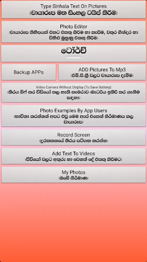 This is a Photo Editor With Sinhala Arts. you can add Sinhala font characters, Sinhala Words to Photos and save them in your phone memory as a new copy.