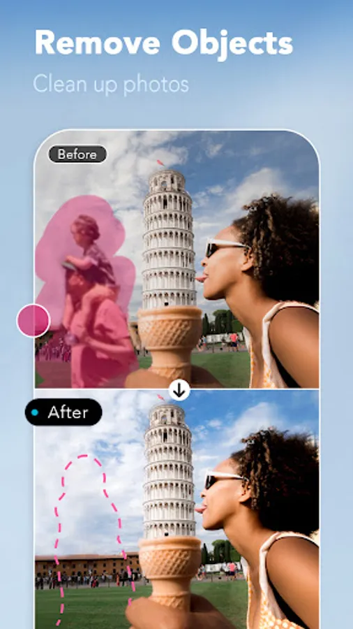 • AI Removal: Remove object, people, or watermarks that spoil your pictures