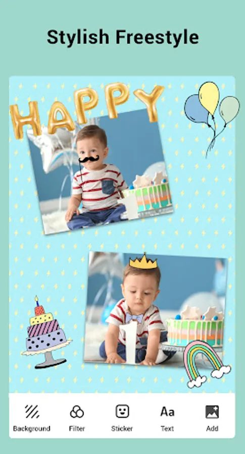 Select beautiful background with full screen ratio to create a scrapbook. You can decorate with pictures, stickers, texts, doodles, and share your scrapbook to Instagram Stories and Snapchat Stories.