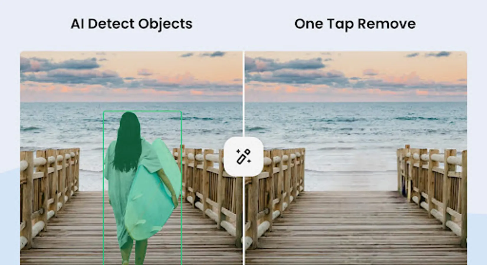 Say bye-bye to passersby or unwanted objects in photos, with the AI pocket app, Remove Objects - Pic Retouch!