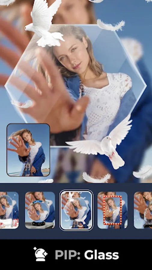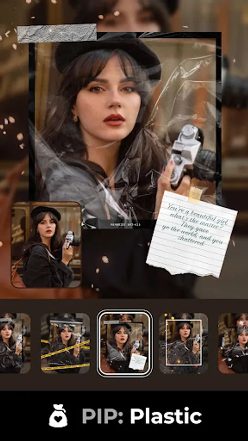 Use different PIP styles in the app to make your selfies and photos original and beautiful. There are many styles in the pip collection. You can put photos in glass, cup, mirror, water, plastic, polaroid and etc.