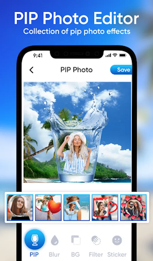 PIP photo editor is Most famous photograph impacts. Make your photo additional fun with innovative frames. PIP Photo Editor is an easy to utilize application that makes some intriguing effects, especially when utilizing the PIP Classics frames. There are many styles in the pip collection. You can put photo in the glass, cup, reflect and so on