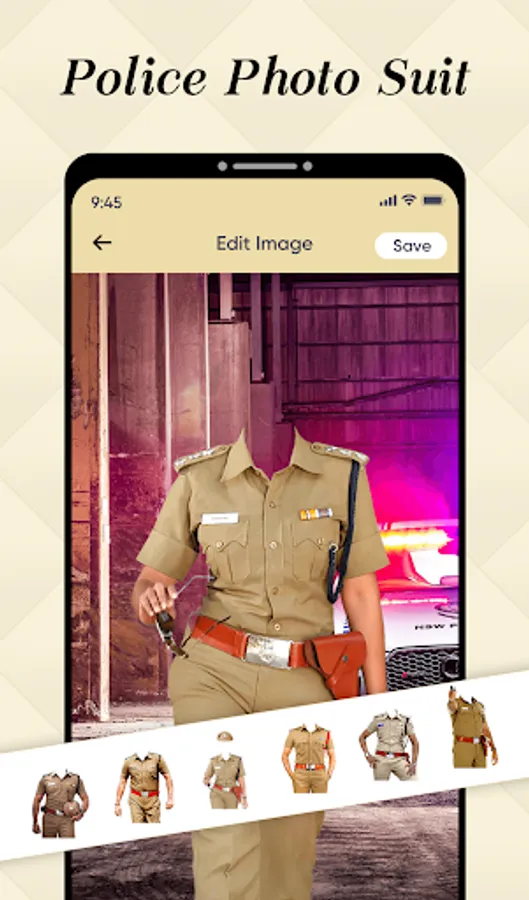 - Police photo suit editor has more than 20+ unique man and woman police Suit.