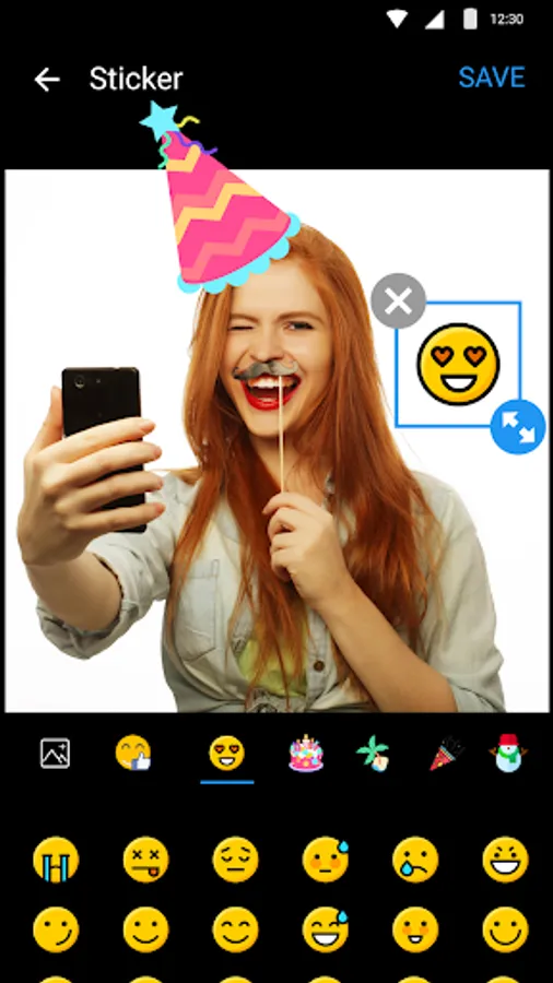 Photo Editor provides many tools and materials for decorating photos and photo collage: Sticker, Text, Mosaic, Draw, etc.