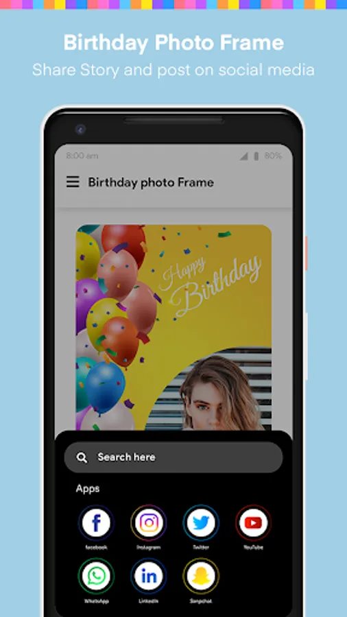 Create your Happy Birthday Photo Frame with beautiful & amazing Birthday Photo Frame App and share it to your loved ones.