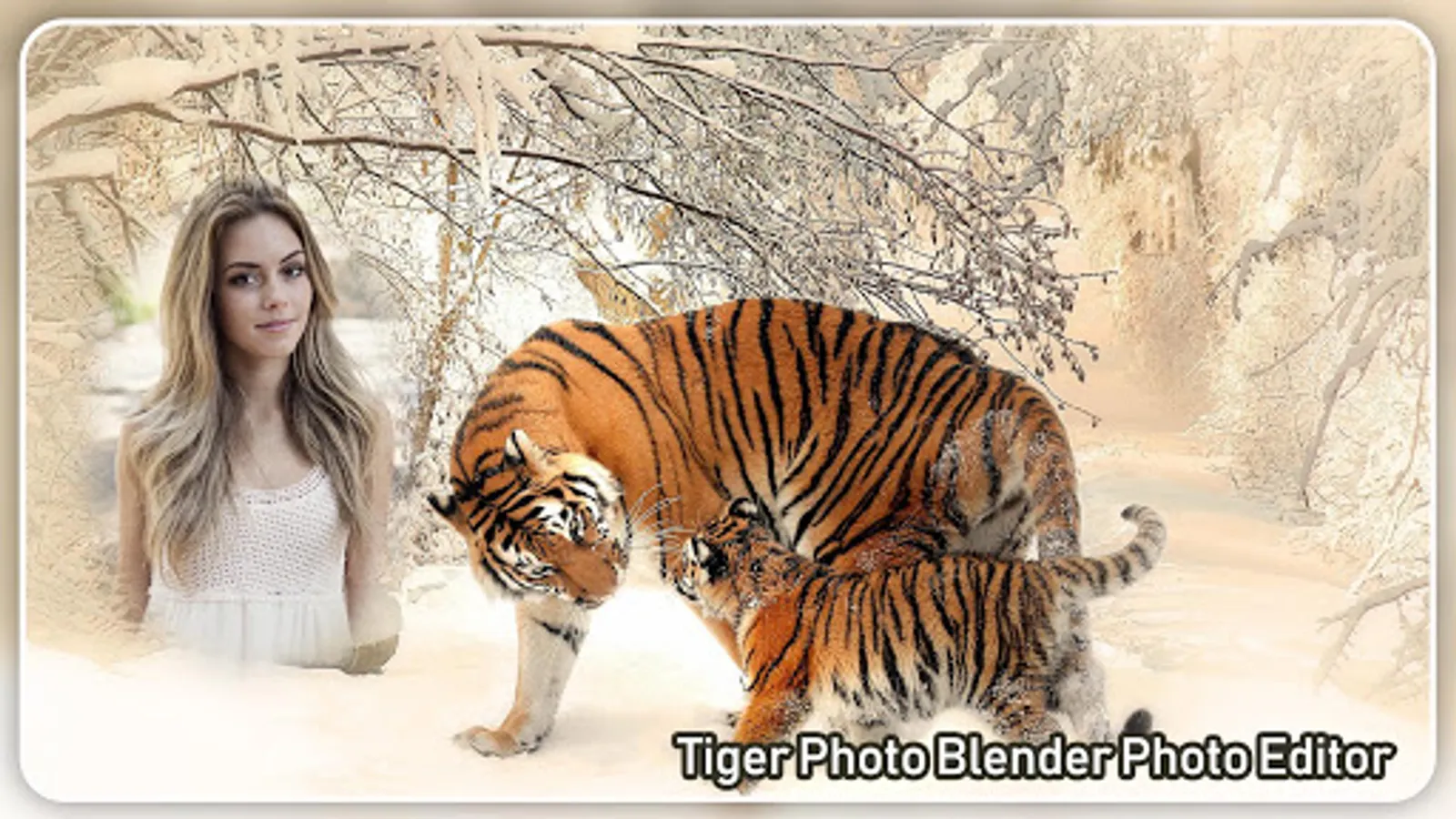 TIGER PHOTO EDITOR has tons of TIGER photo backgrounds and frames to work with your photos and selfies, you can blend your multiple selfies with TIGER photo background in few clicks.