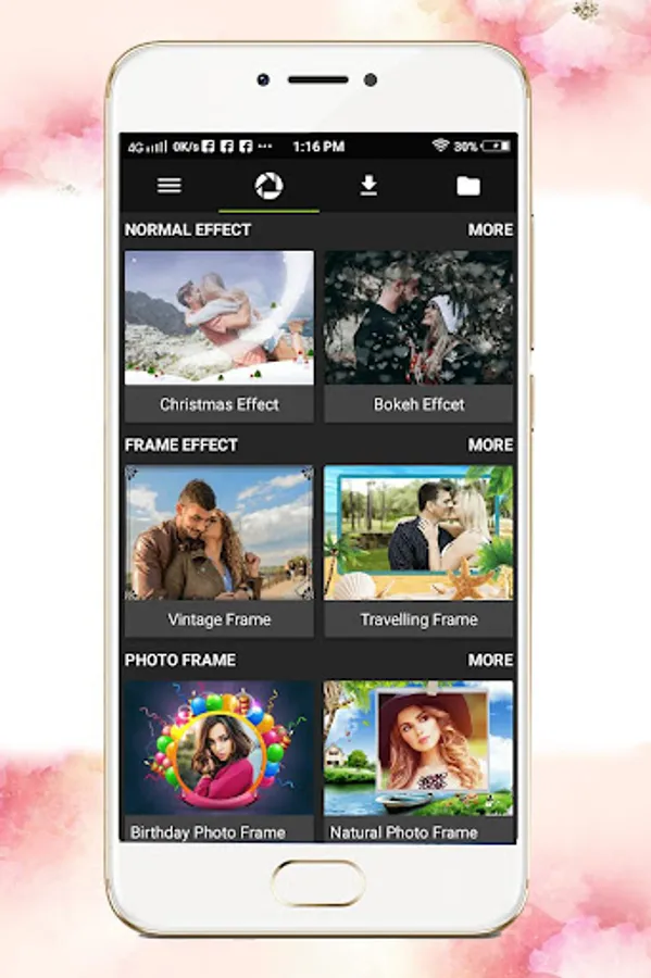 All nature lovers are going to absolutely love the vibrant photo frames. This custom application allows you to select any image from your phone’s gallery and make it more attractive using a photo frame of your choice. You can use the numerous filters for effect and get the feel of being present amidst a pleasant atmosphere. The beauty of your images will increase immensely and it will look it has come out of a photo lab.
