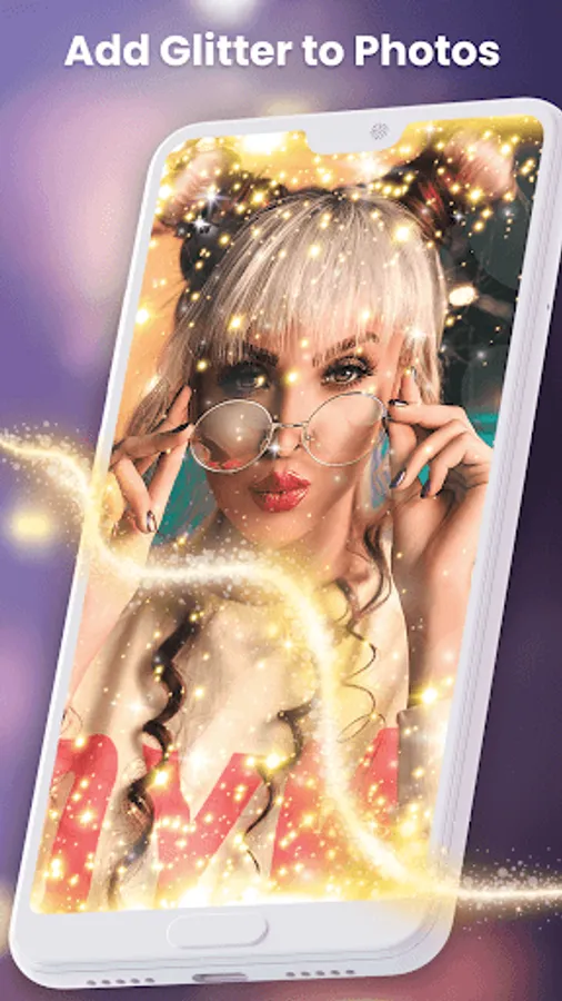 In Photo Glitter and Sparkle effects, there are so many live glitter and sparkle effects, you have just selected your photo in a gallery or camera and select different effects.