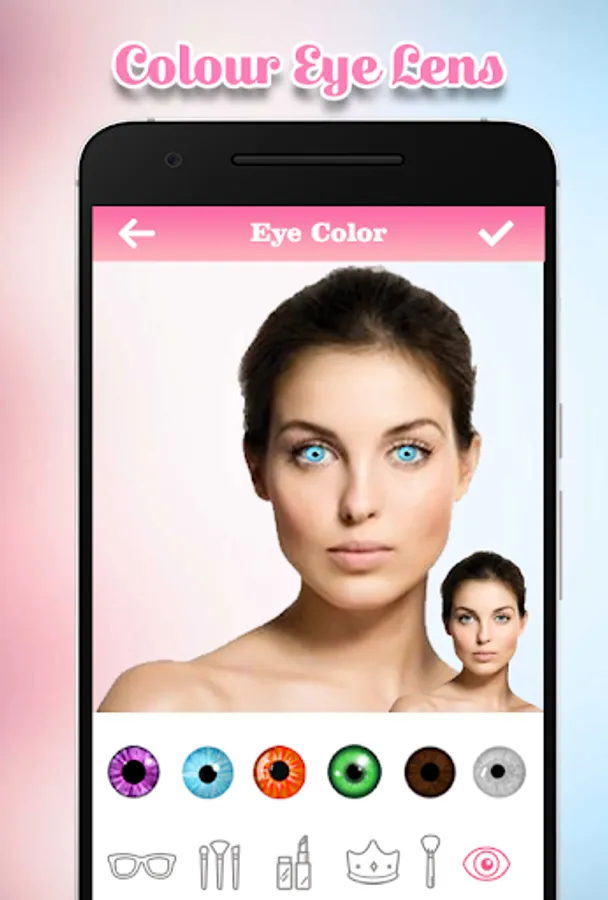 » Make your eye color shine with smart tools that conceal under eye circles and remove red eyes.