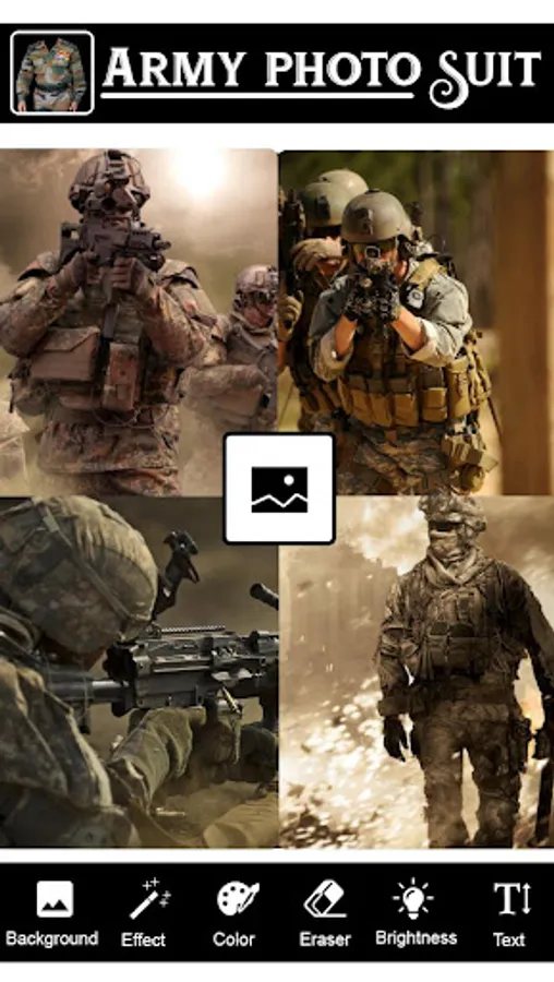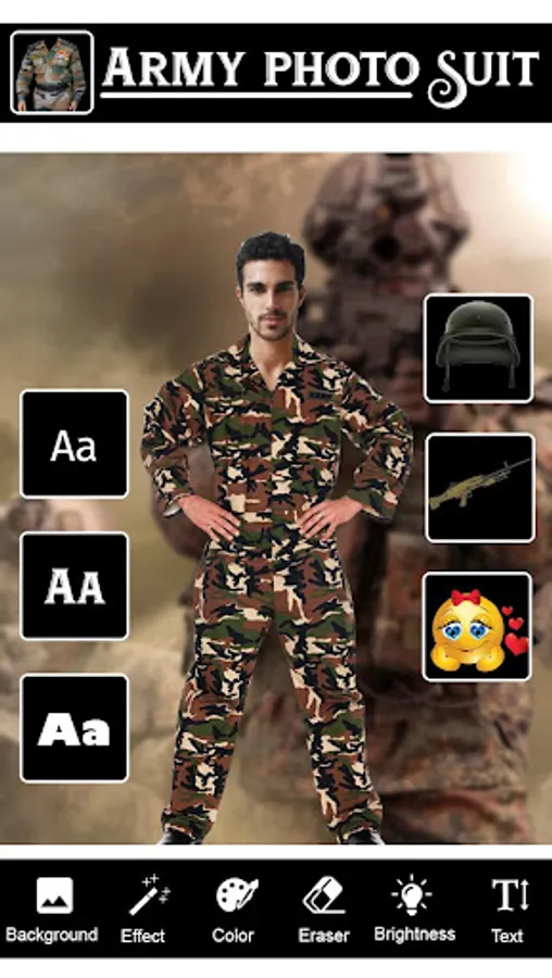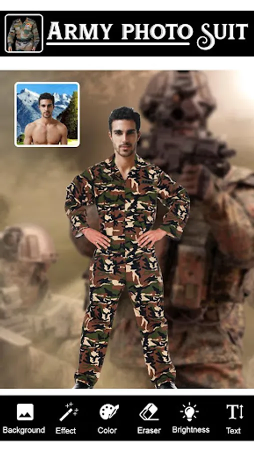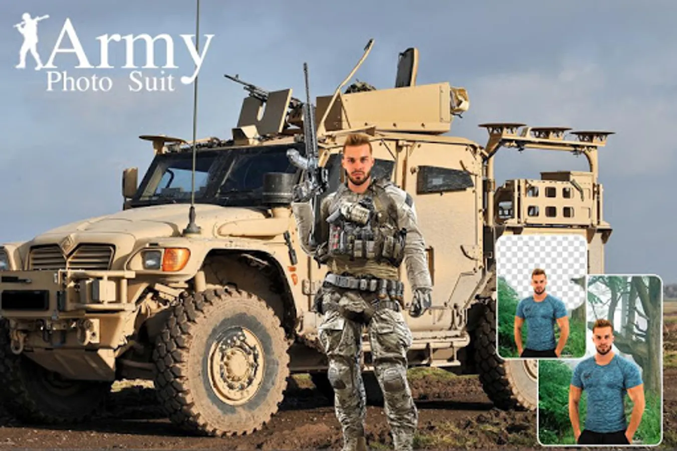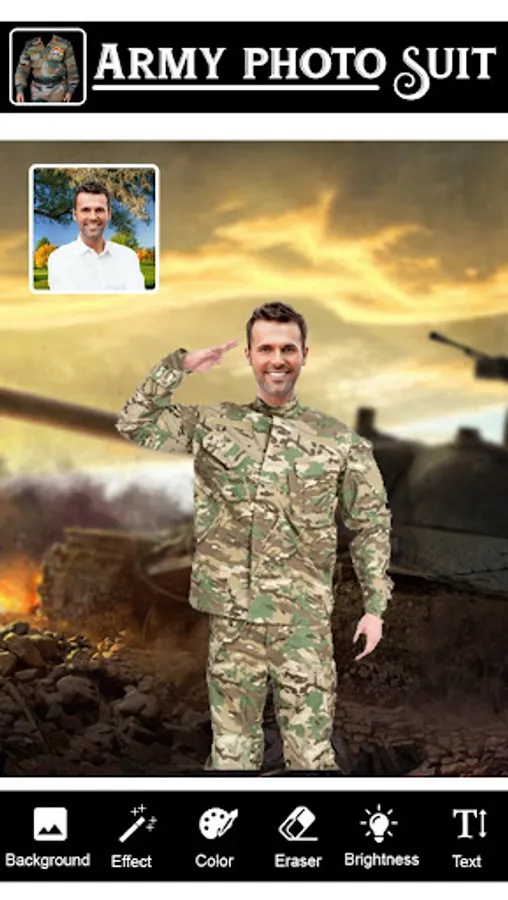 Photo Suit App select photo cut paste photo & set photo into army (military) dress photo.