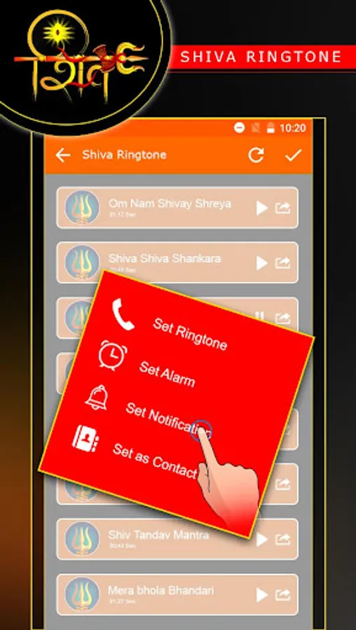 Using this Lord Shiv(Mahadev) Rigntones app you can set ringtones and wallpaper of Lord Shiv as your mobile ringtone..