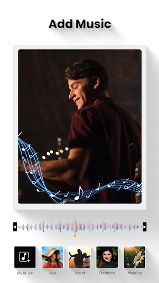 video maker photos with song is powerful free editing tools and share your memorable and sweet moments with your friends.