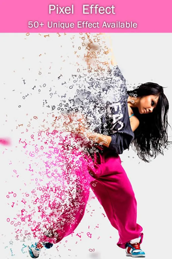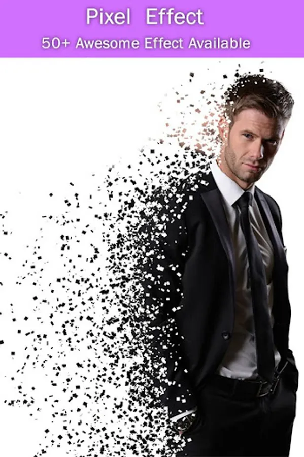 Photo Effect for Pixel Photo is use simple, yet powerful, photo editing tools to apply particle dispersion or pixel effect.