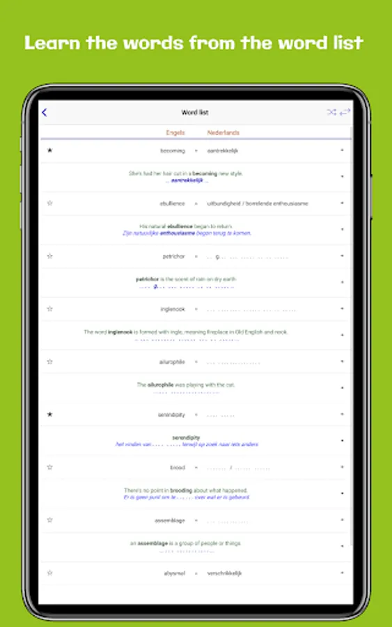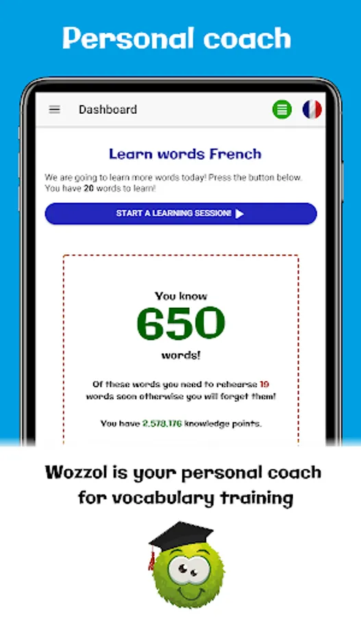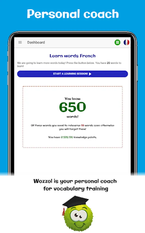 All you have to do is enter the words that you wish to learn and come back regularly so that Wozzol can help you practise the right words at the right time. ๐
