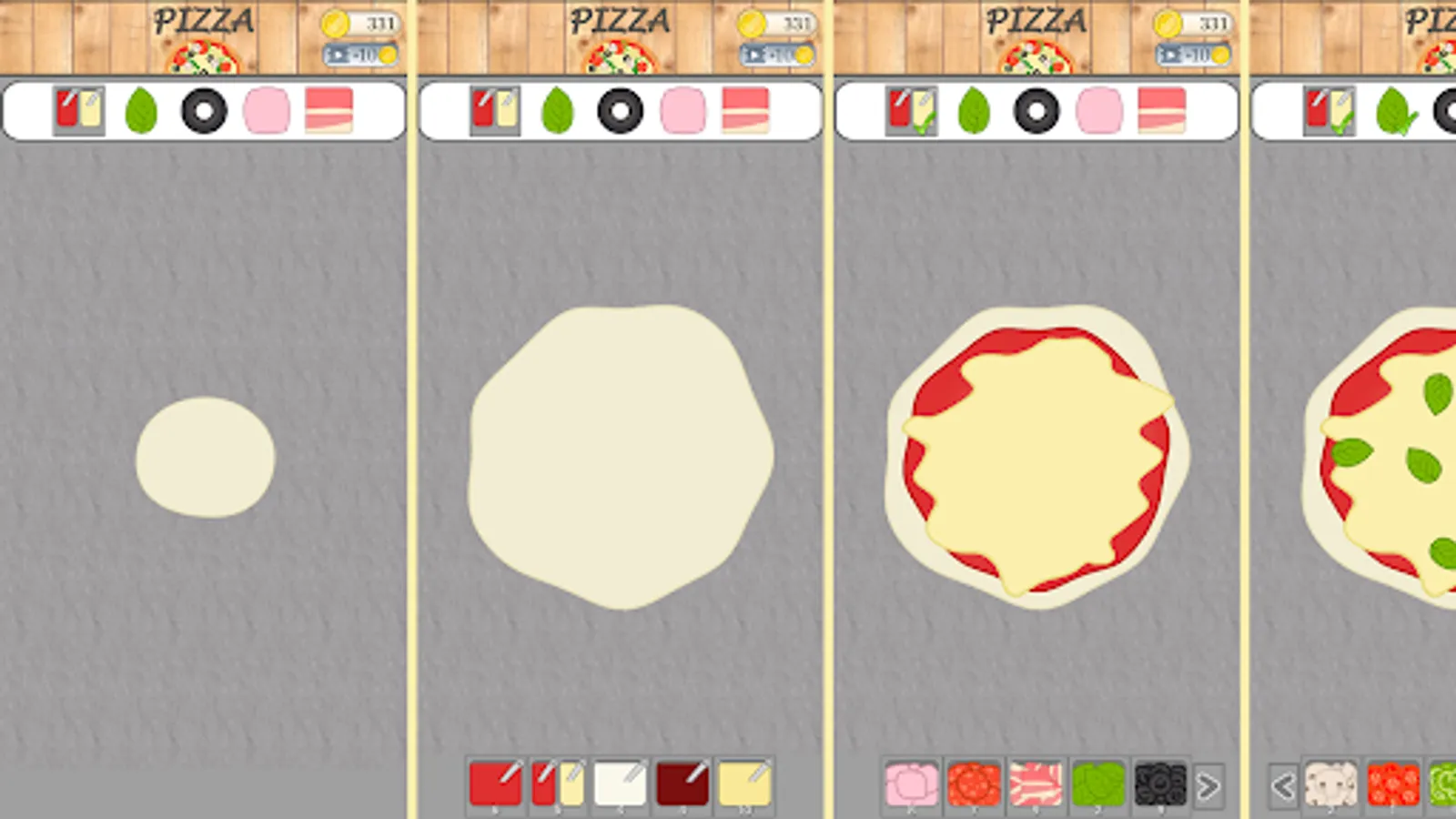 2- To your taste: free game mode in which you are the pizzaiolo and you choose which sauce and ingredients to put on it from all the ones you have unlocked.