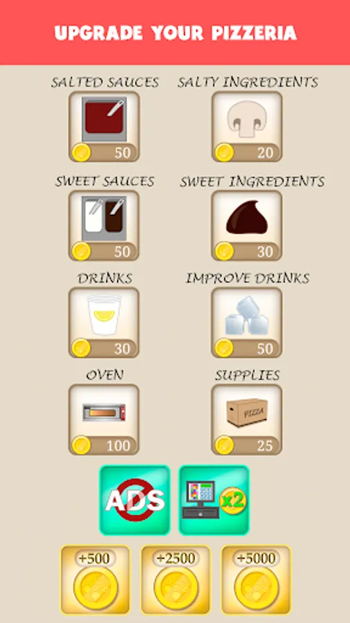 🍕 Unlock sauces, ingredients and drinks