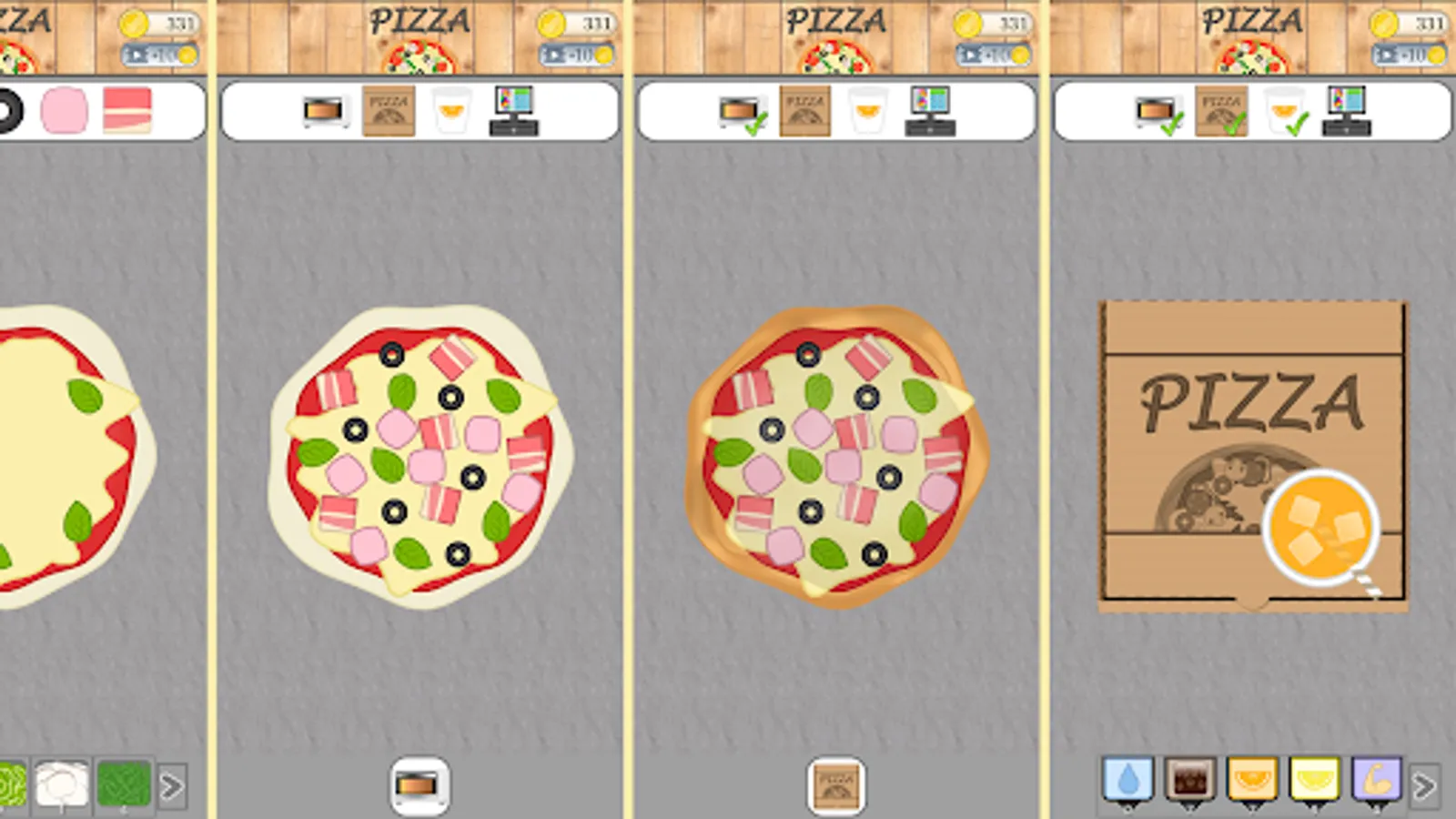 1- Orders: you have to make pizzas and deliver them to customers to get coins and improve your pizzeria