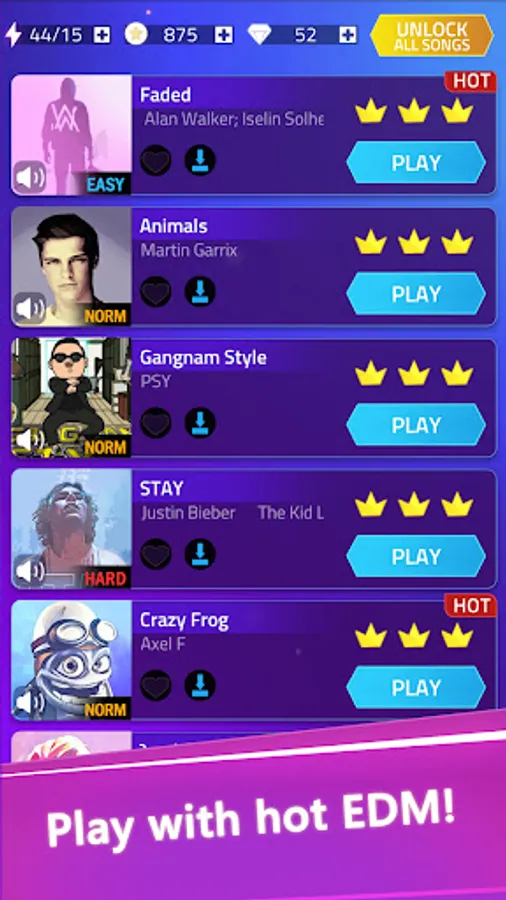 Music Tiles 2 - Magic Piano is a cool music game. To play the game, you need to listen to the music and tap the piano tiles according to its rhythm.With awesome visual designs, You can play and experience EDM songs in a special way. Let's MUSIC your soul with hot songs!