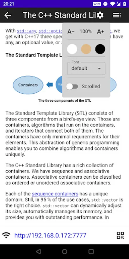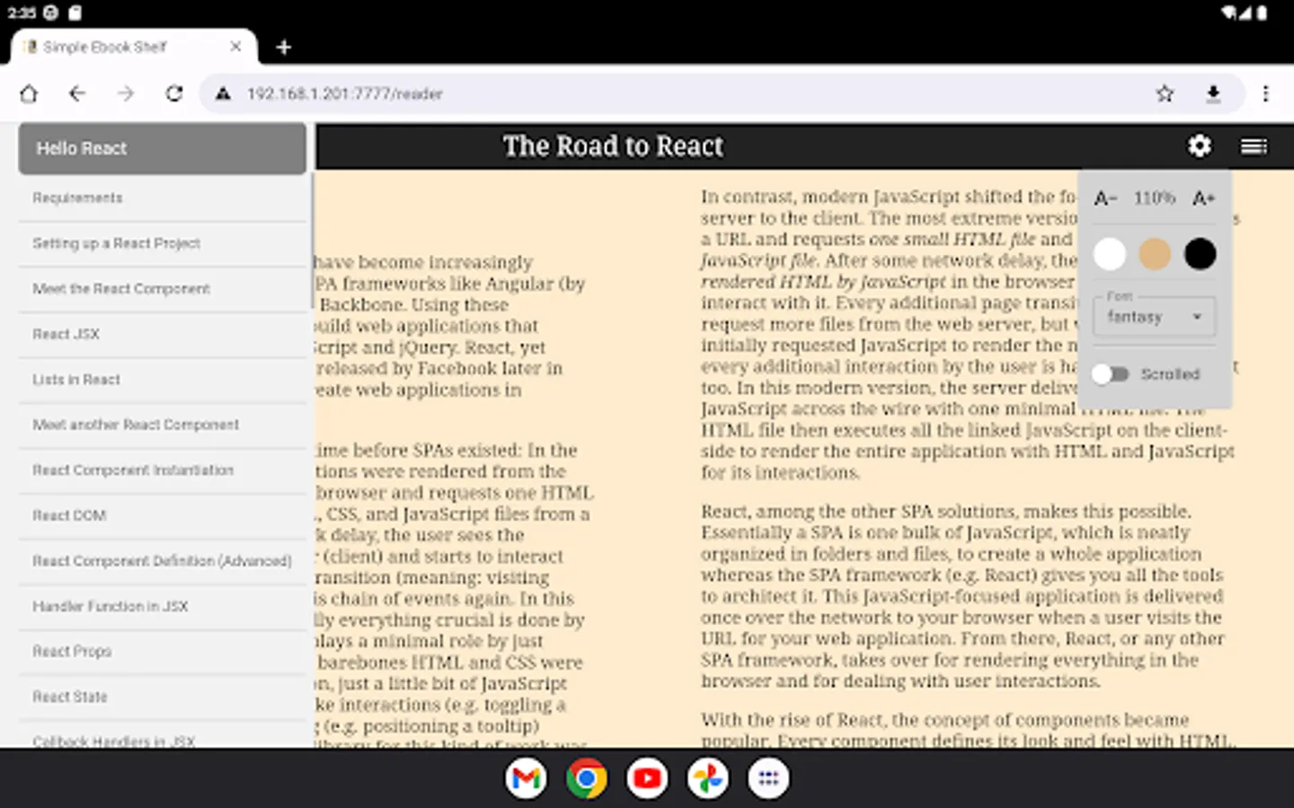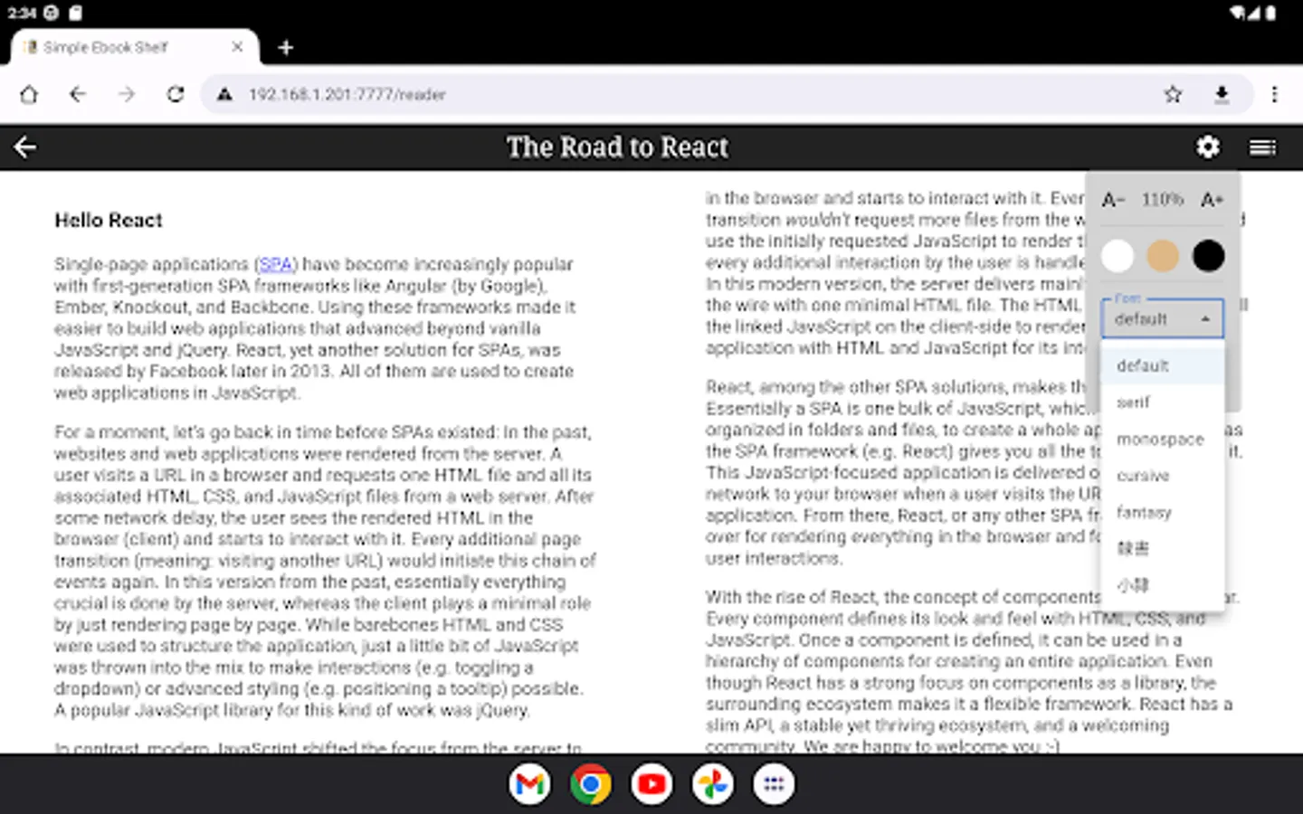 3. Embedded custom fonts, so user can switch between several fonts, change background color etc.