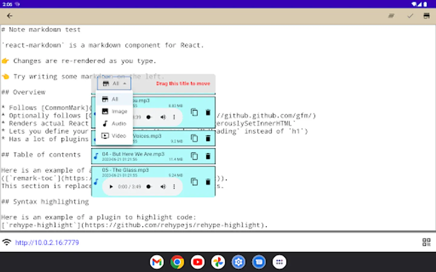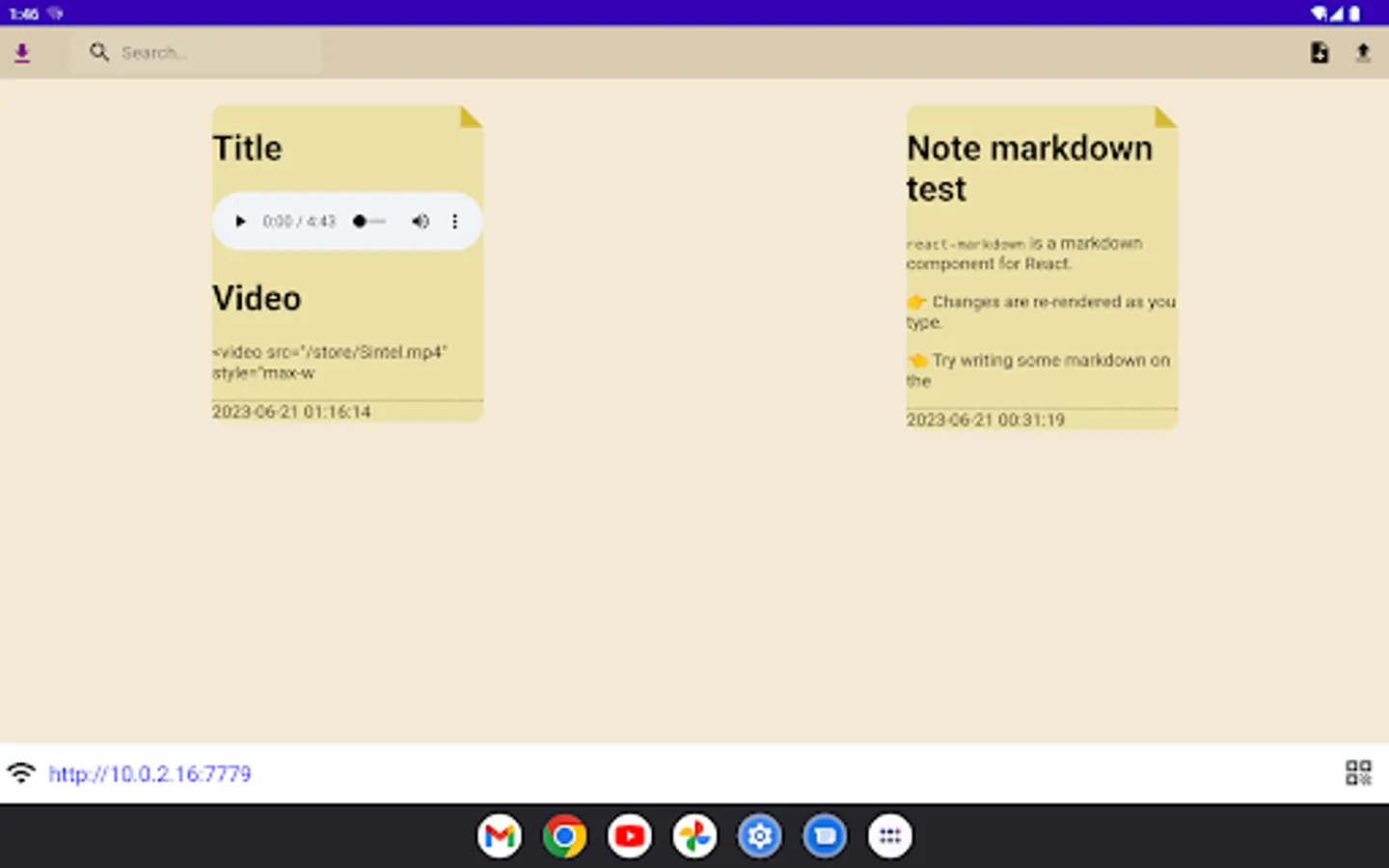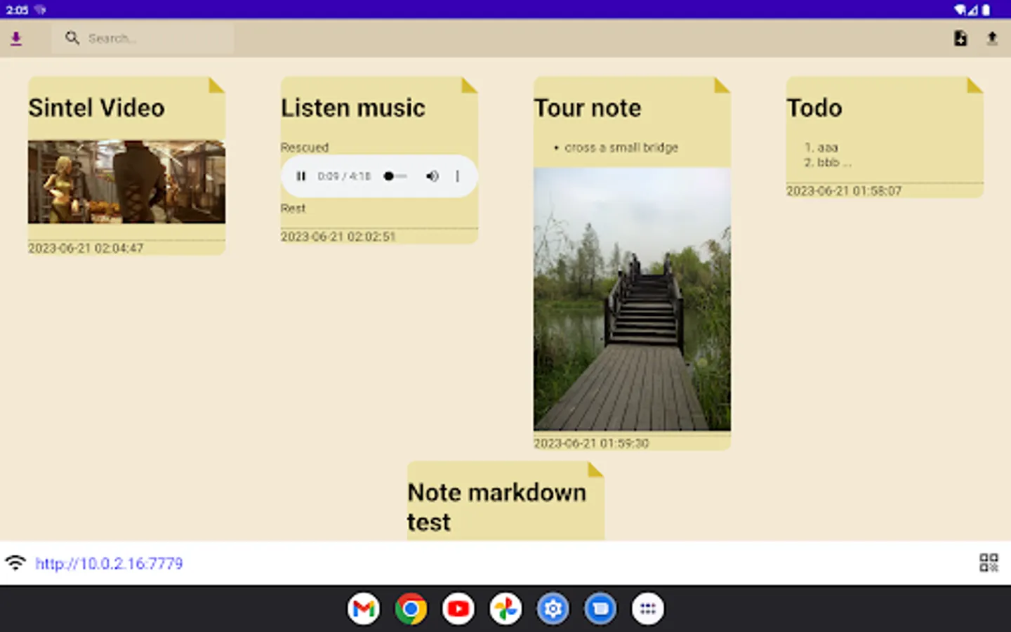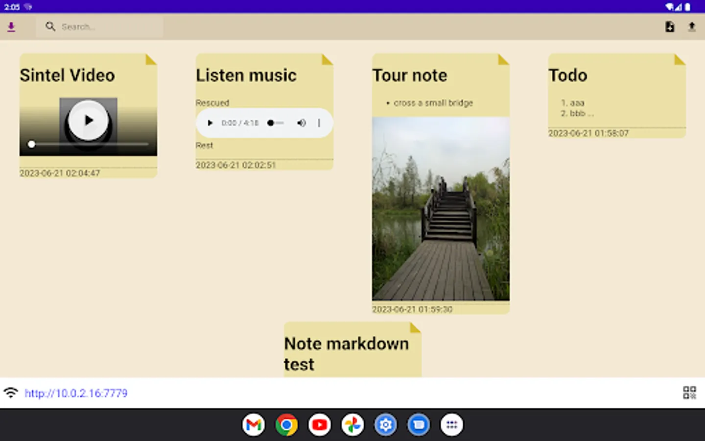 Simple note app can act as note, blog, or vlog for sharing in local network