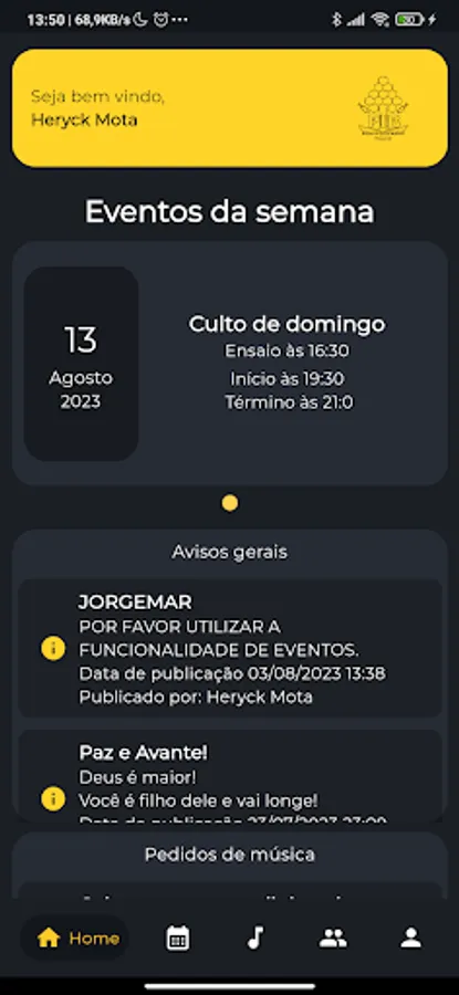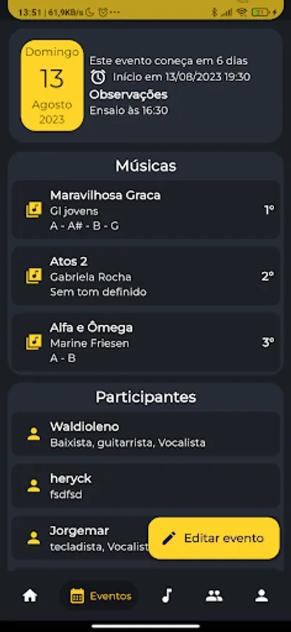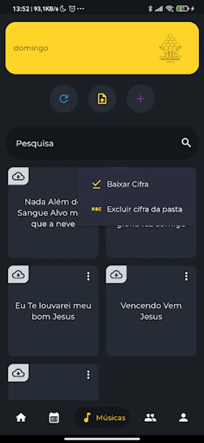 In order to organize the events of the music team, this application was created to organize and horizontalize access to the figures that the church used to play the songs on its occasions. With offline access, it will be possible to play any song anywhere, giving the team greater flexibility.
