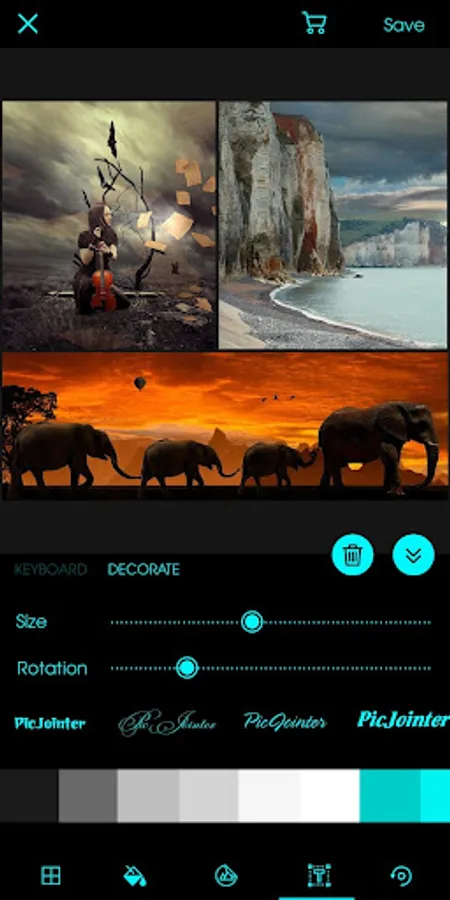 ● Pick from hundreds of categorized PATTERNS to decorate your collage