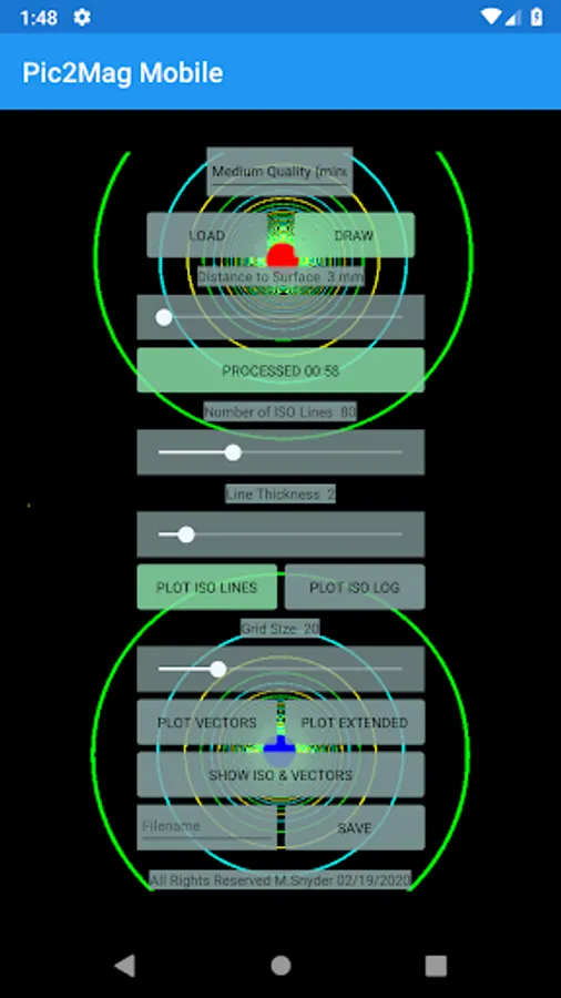 If you have ever placed magnets on a table and wondered what their combined magnetic field looked like, then Pic2Mag's Field Calculator is the right app for you. If you have ever wondered about the electric field around a battery or a capacitor, Pic2Mag's Field Calculator can plot it.