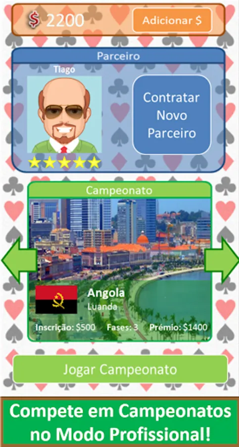 - Professional game mode, where you'll have to manage a budget to compete and unlock championships located in several Portuguese-speaking countries, as well as hire smarter partners!