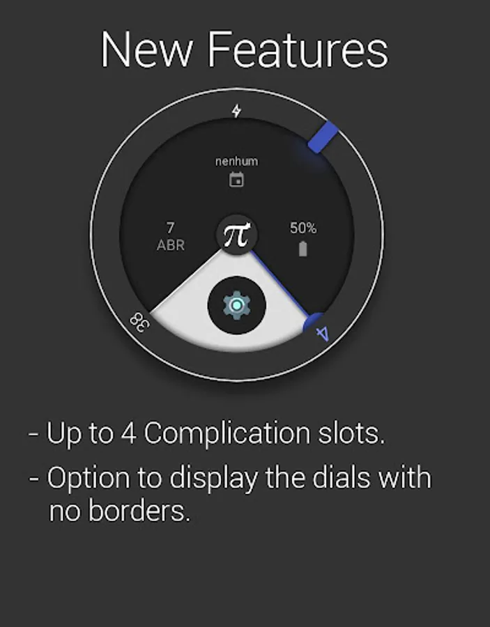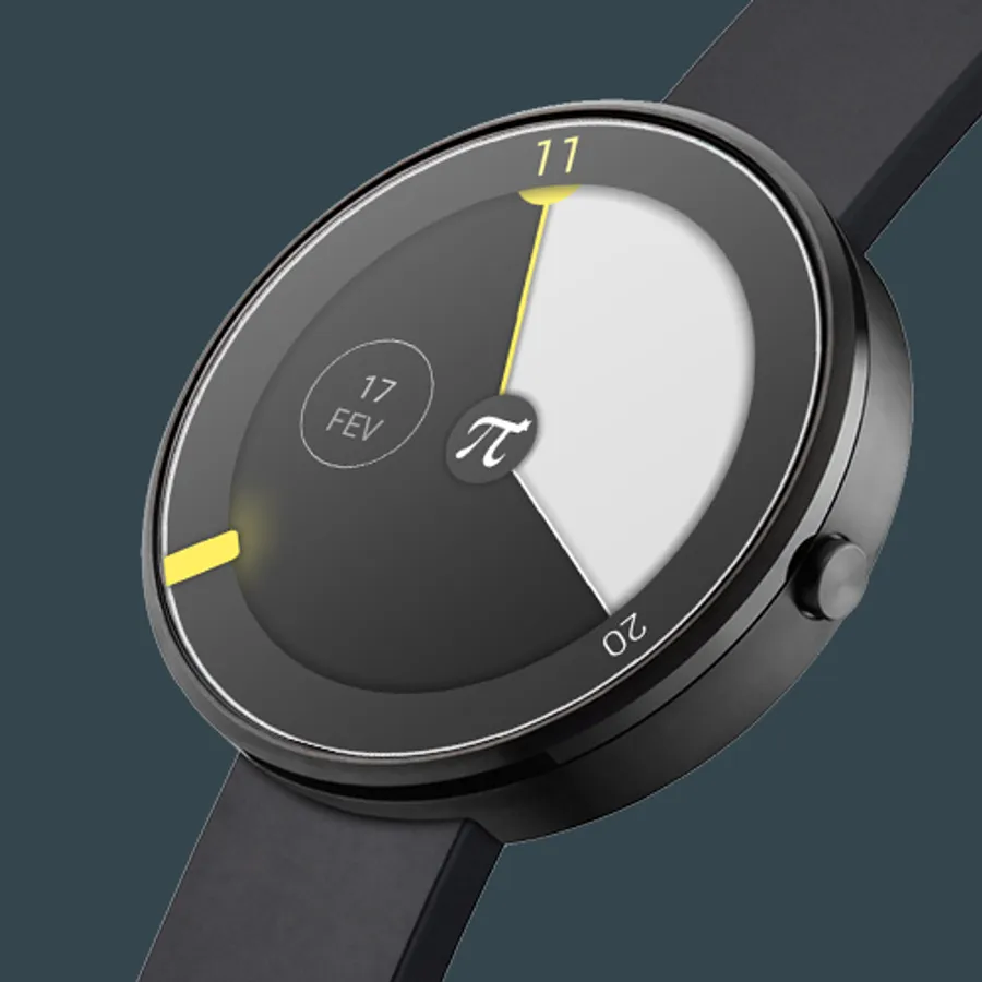 The new Pi watch face is carefully designed to display time and data thought wear 2.0 complications, while keeping it simple, elegant and minimalist.