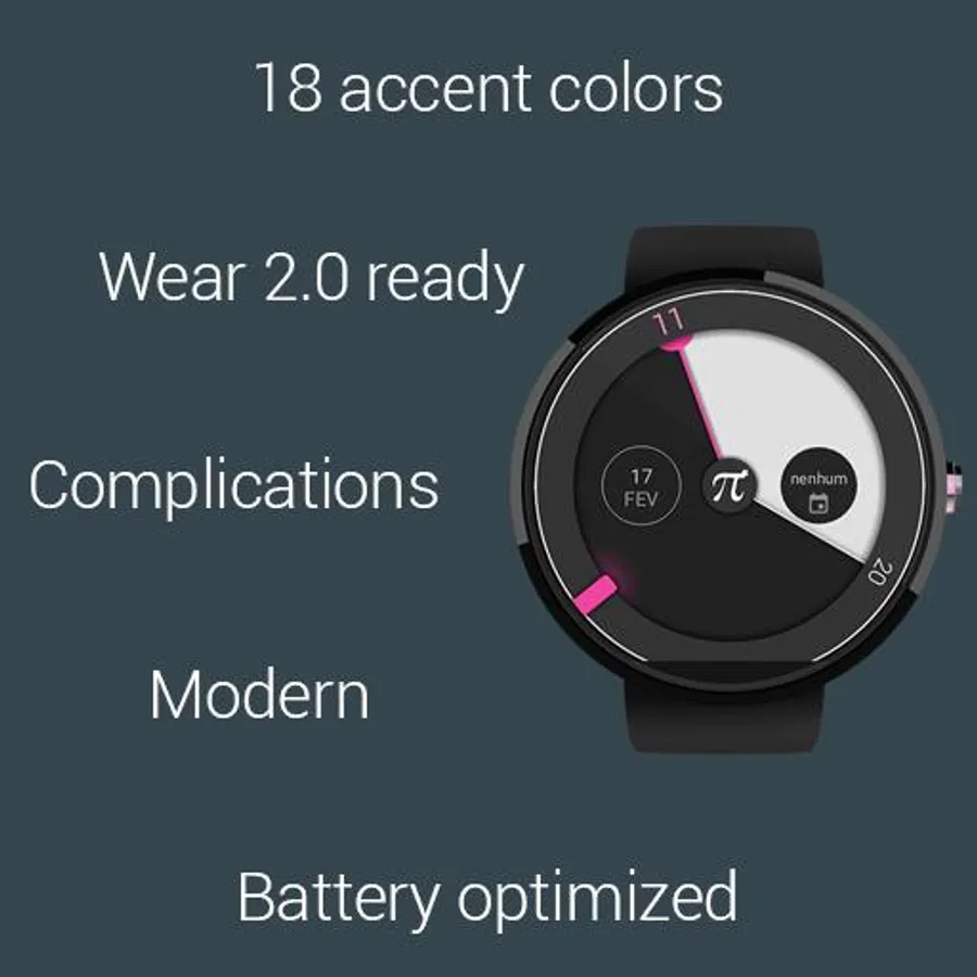 The Pi Watch face is inspired by wear material design and geometry, choose between 18 material accent colors.