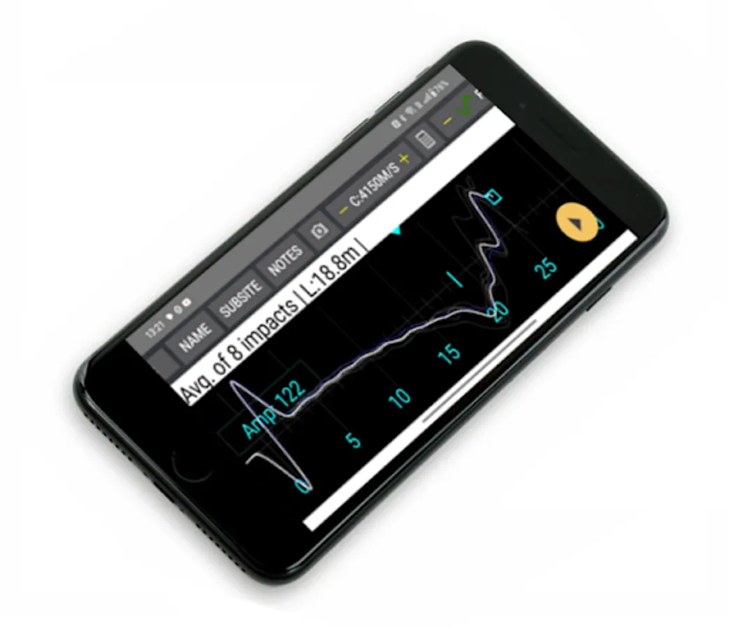 To make the pile integrity test, the pile top is tapped with a lightweight handheld hammer, The reflected wave is captured and analyzed by the PET's digital accelerometer to provide information regarding the length and shape of the pile.
