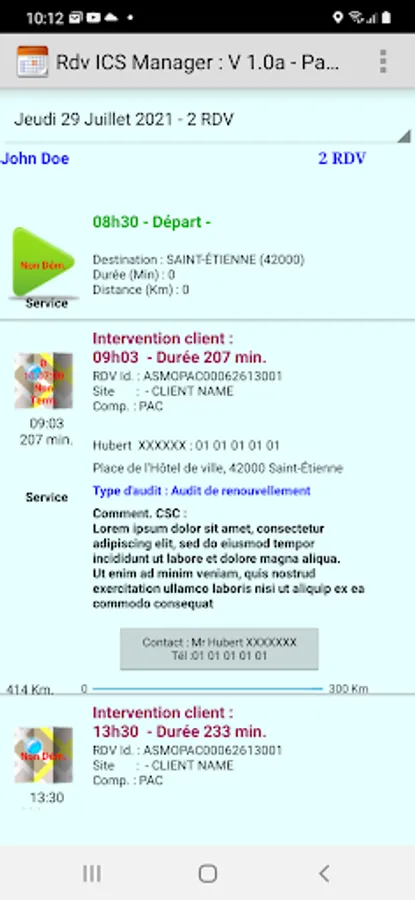 Progress Bar provides refreshment with the approximate distance of each appointment (as the crow flies equator level).