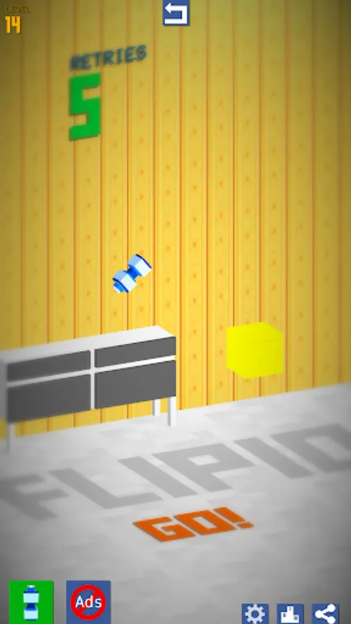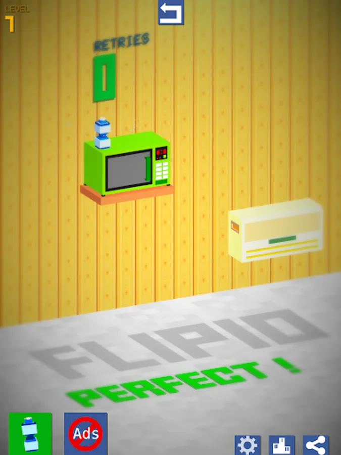 Test your skills and find out how many levels you can complete in this bottle flip simulator!