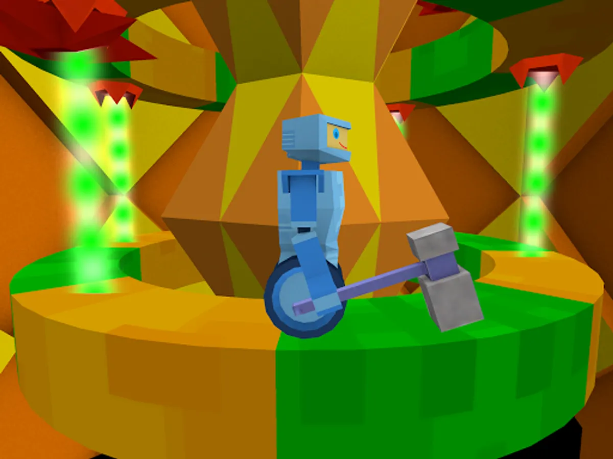 There is one problem though : you have been partially dismantled, thus can no longer brake. Adding to that, there are deadly spikes and lasers to greet you along the way.