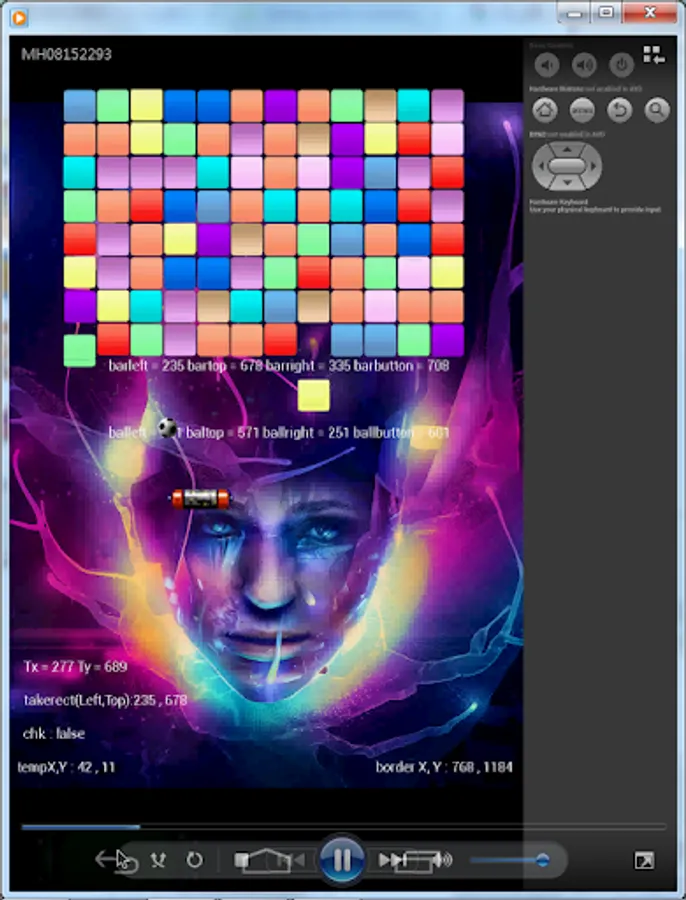 Although the size of the background image can be scaled by using the Matrix method, but the zooming under too small screen pixels has completely lost the meaning of playing the brick breaker game, so a fixed size image file is used