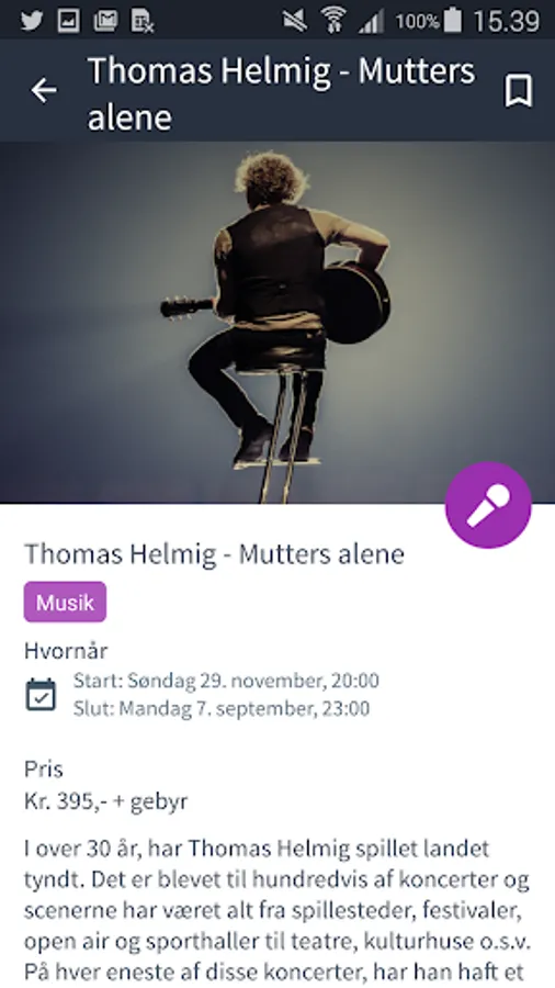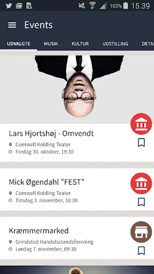Pindle is an event app that gathers information about upcoming events, places and offers in your local area and in several of Denmark's major cities, including Odense, Copenhagen, Kolding and Vejle. Use the user-friendly app when you need to find your next concert, theater performance, boot market or something else, or get inspired by our proposals for events near you.