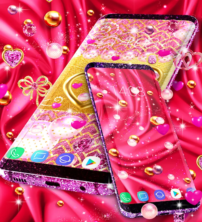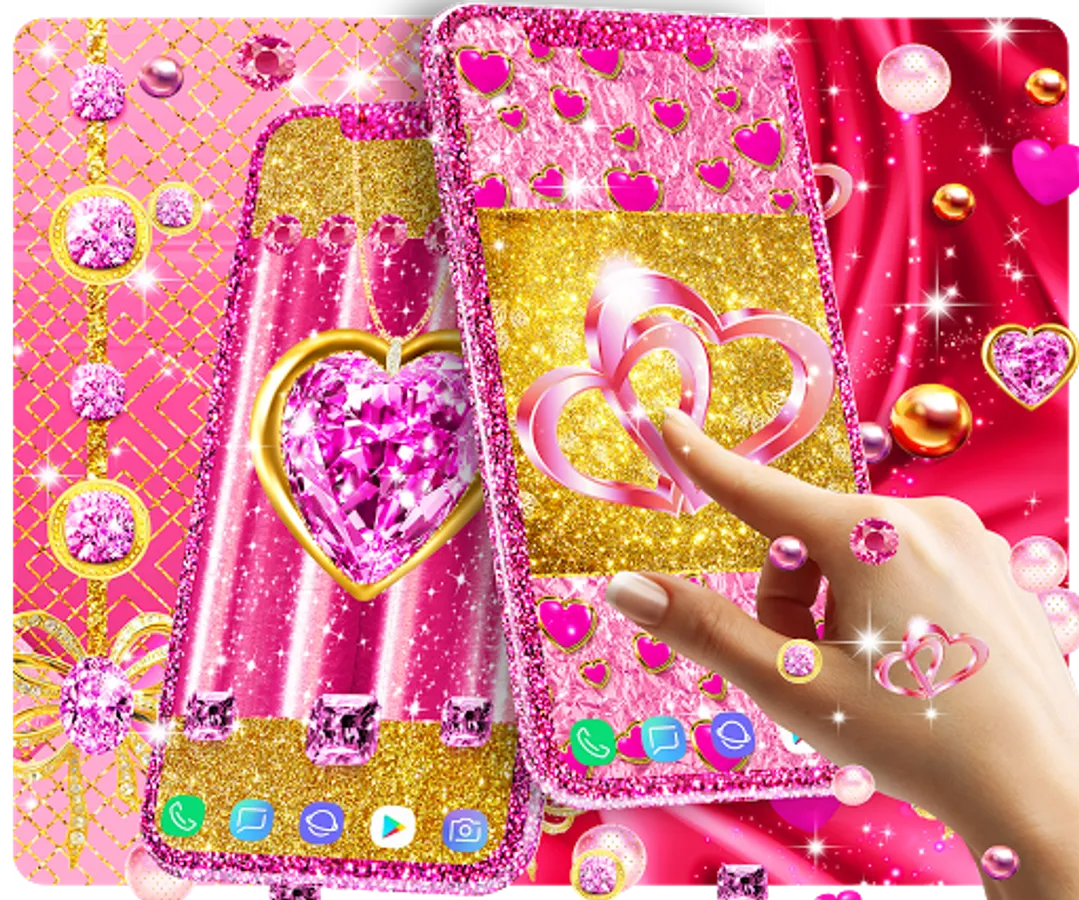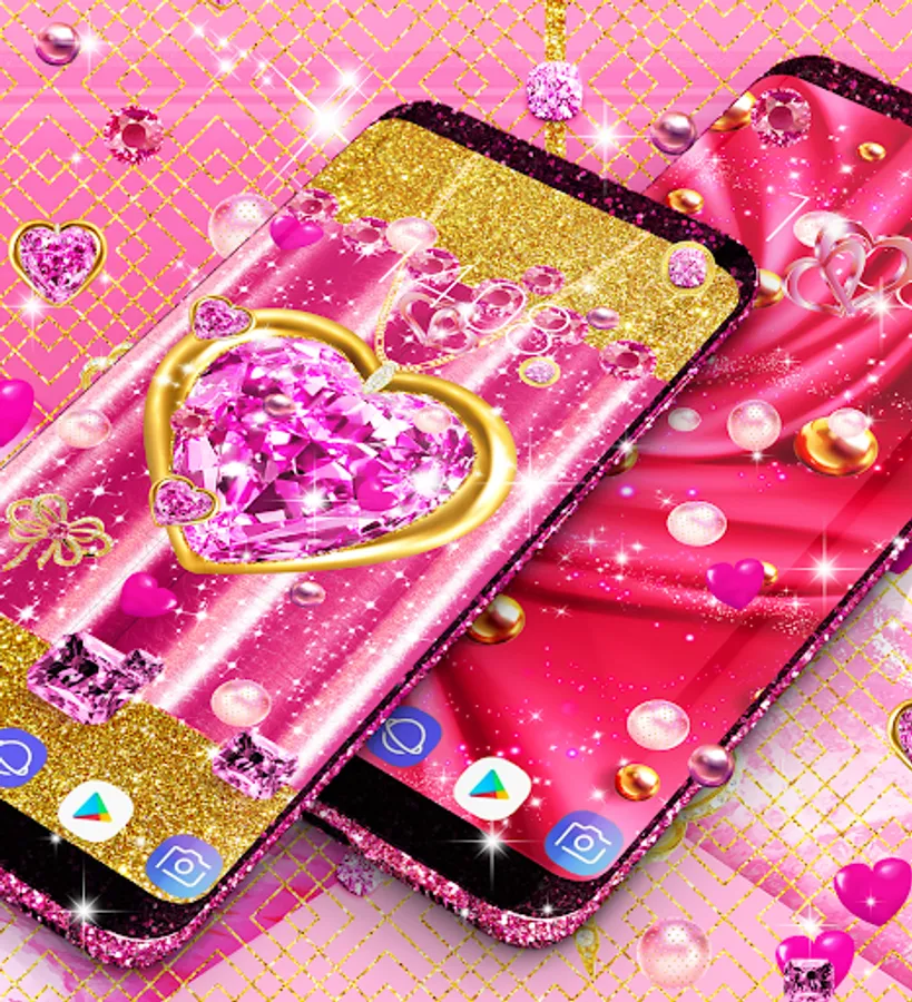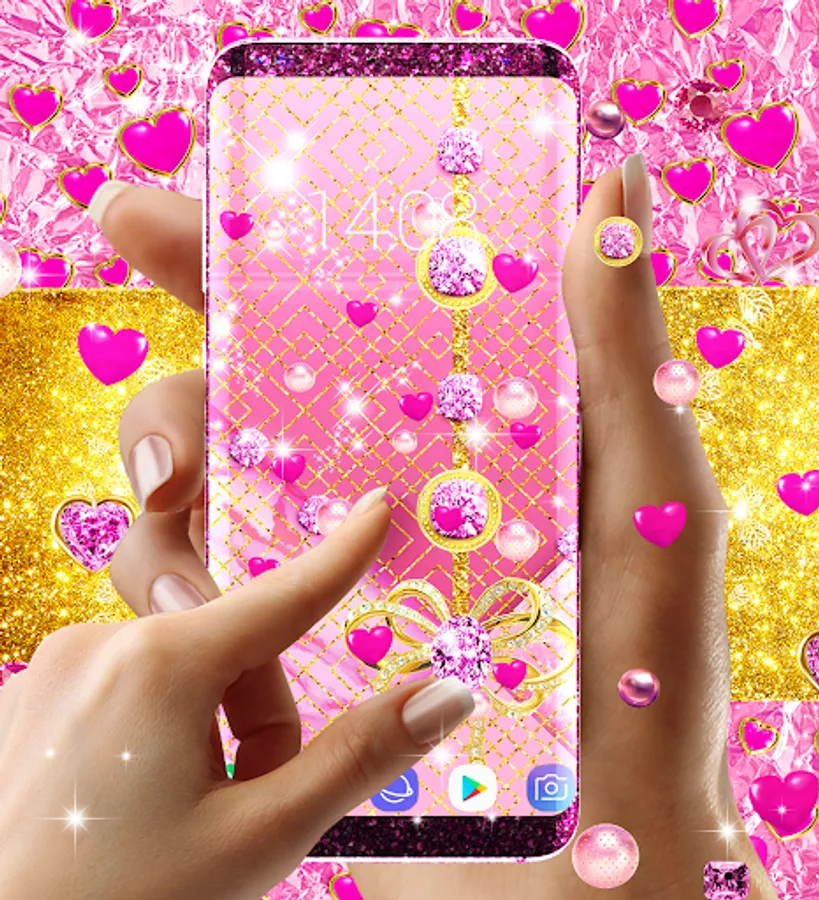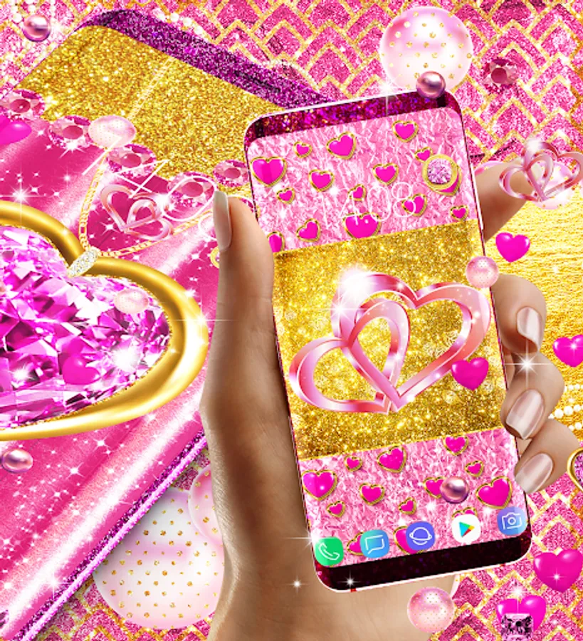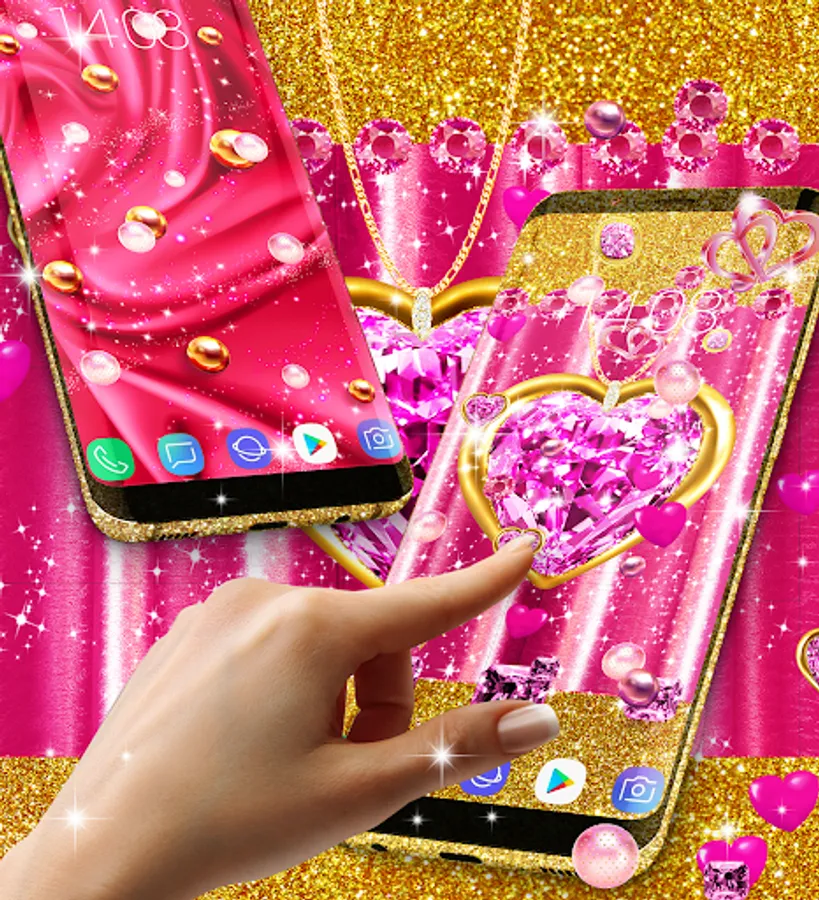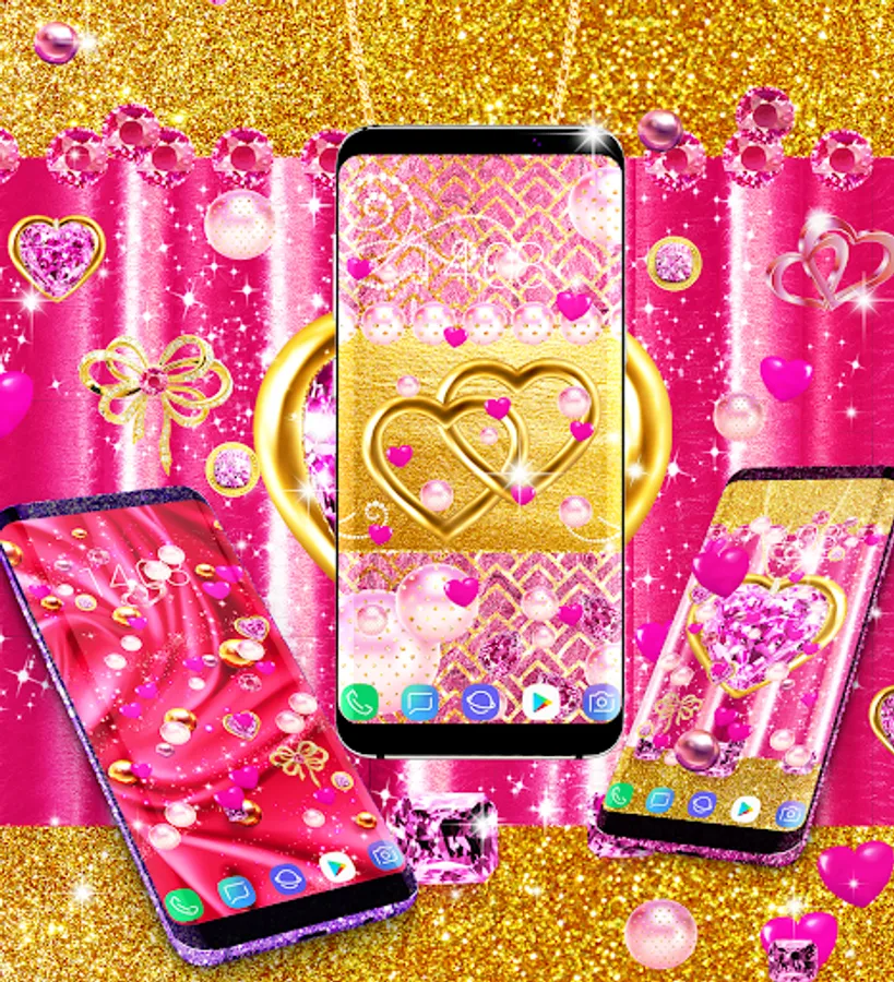 The best way to transform your phone into something very cute and glittery. Add a background with pink and gold elements and choose your animation from various hearts, diamonds and luxury designs. This app have luxurious and fancy backgrounds with gold glitter or pink and animations with :