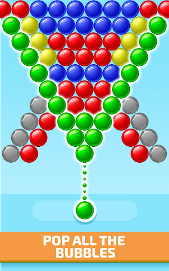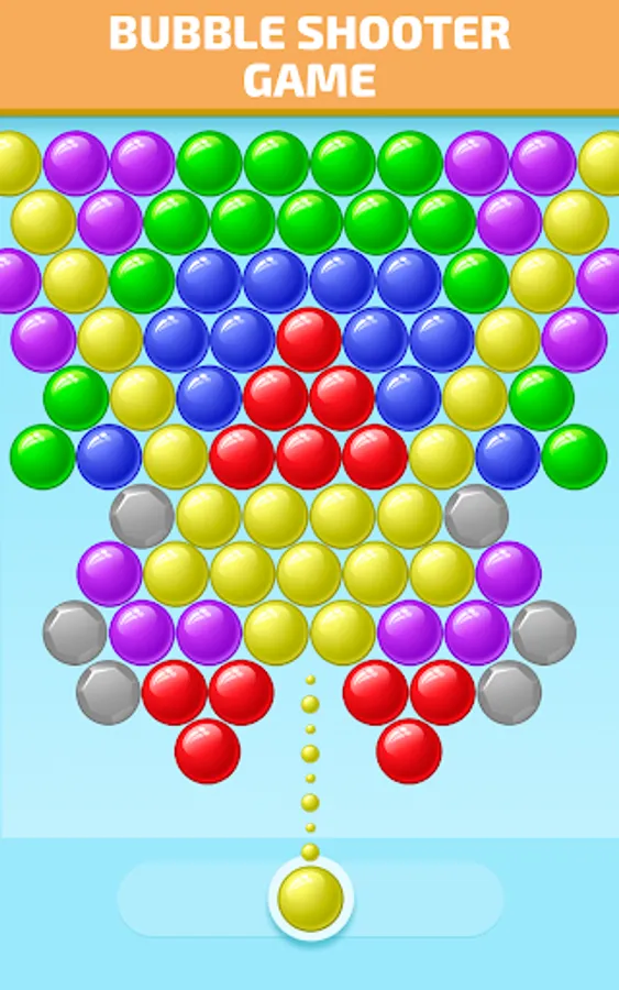 Puzzle Mode: Try to clear all the bubbles on the screen before the reach the bottom, the roof drops every number of shots.