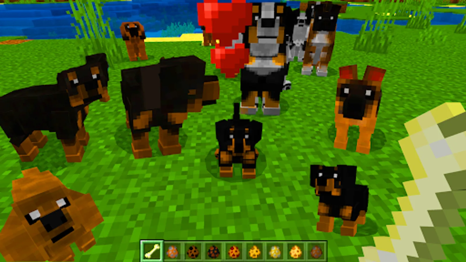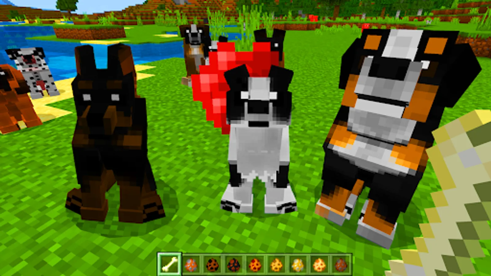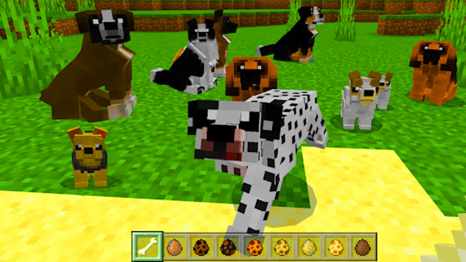 Petshop and zoo, animal care and doggy games is what this mod mcpe offers! Dogs are faithful companions in the game. They help fight monsters, protect the home, and make great company to hang out with. And puppies are generally a great mood and tenderness. This minecraft mod will allow you not only to make a friend, but also to choose your own special dogcraft, tame it and train it in your own way. Now you are truly loved forever!