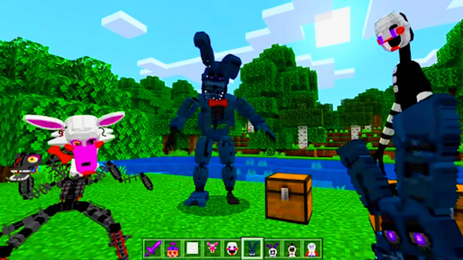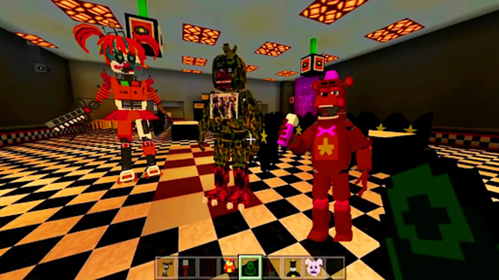 Many probably played the Freddy's Security Breach add-on, so the most terrible monsters from fnaf world in Minecraft PE were added to mod assembly. Not far behind in popularity and fnaf sister location. All timelines were changed with the release of each story game, which revealed additional, previously unknown information. Historically, there have been 4 most unified and complete storylines: from FNaF to FNaF2, from FNaF3 to FNaF4, from SL to UCN and from HW to FNaF: Security Breach, which many fans still try to combine into one. The assembly includes the most popular, interesting and creepiest monsters of fnaf9 world.