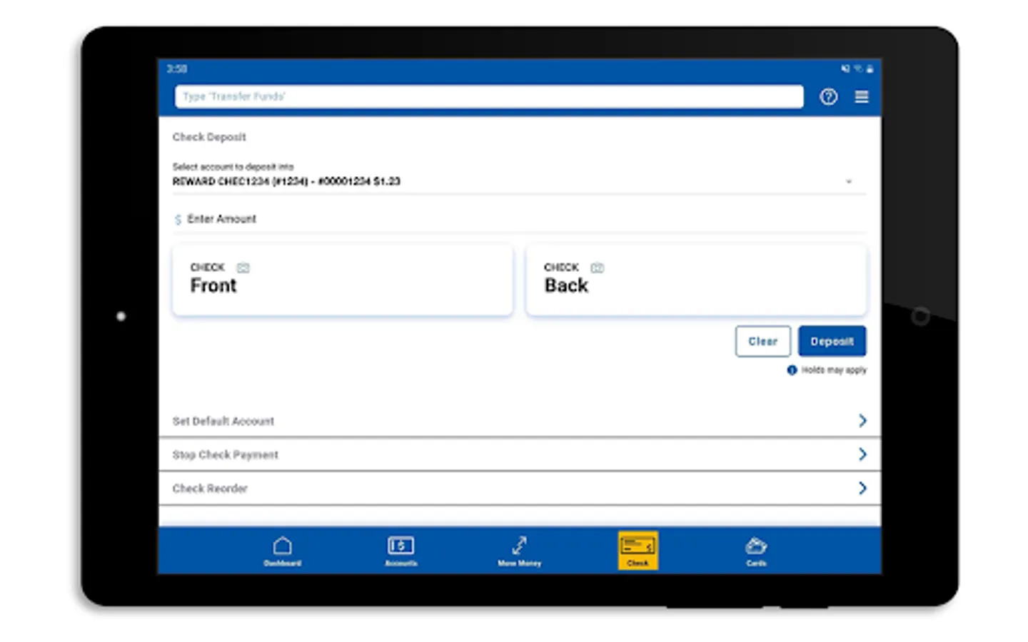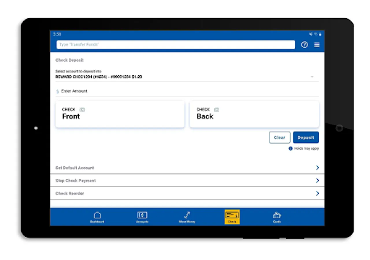 • Deposit Checks- Deposit checks using the camera on your Android device