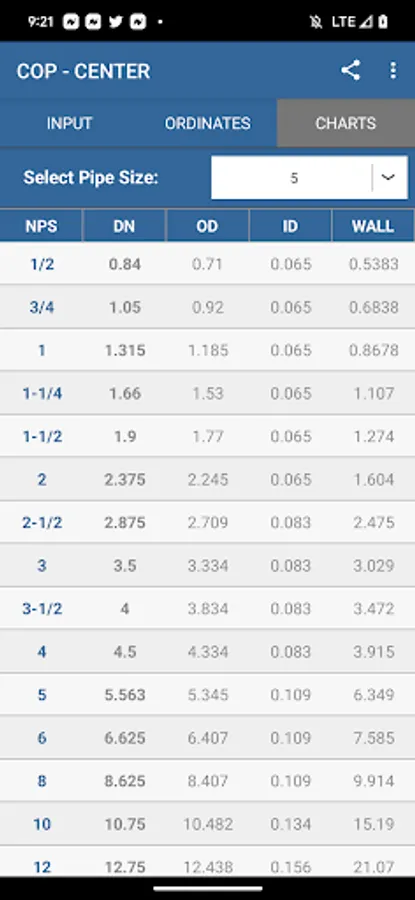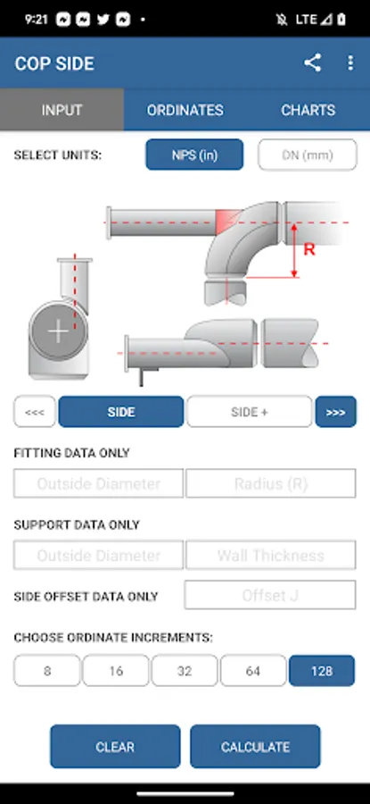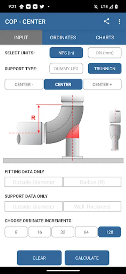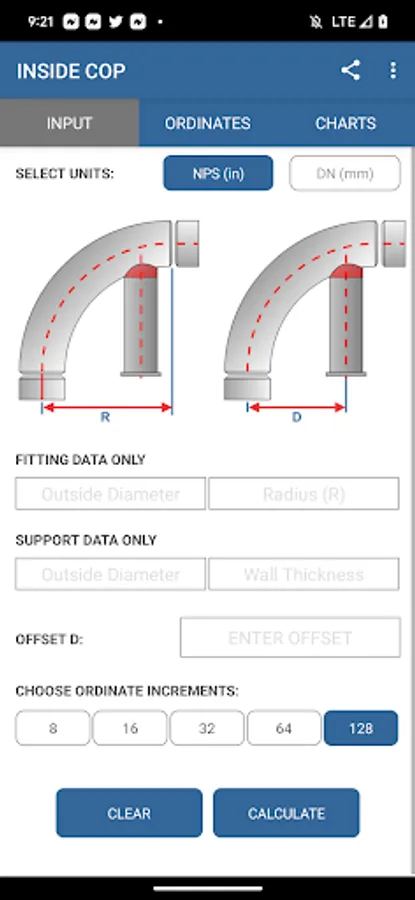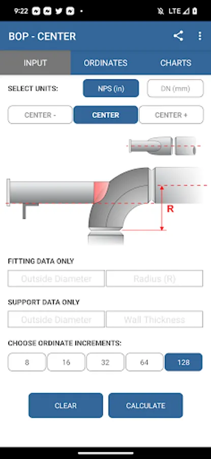 - Calculate "long radius", "short radius" and "3 Radius" fittings