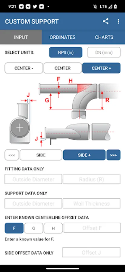 Pipe Support Calculator - Dummy leg and Trunnion calculations. Quickly calculate up to 128 ordinates for custom cut pipe to attach to the back of a 90 degree fitting.