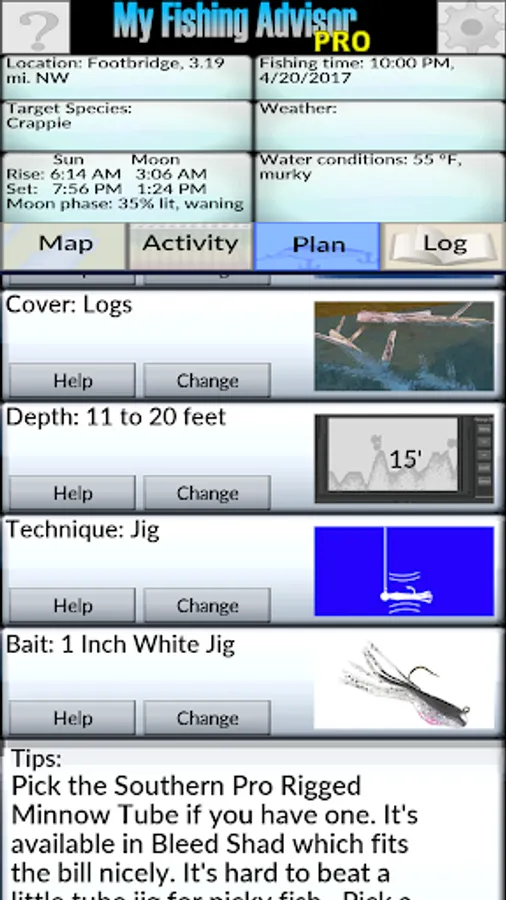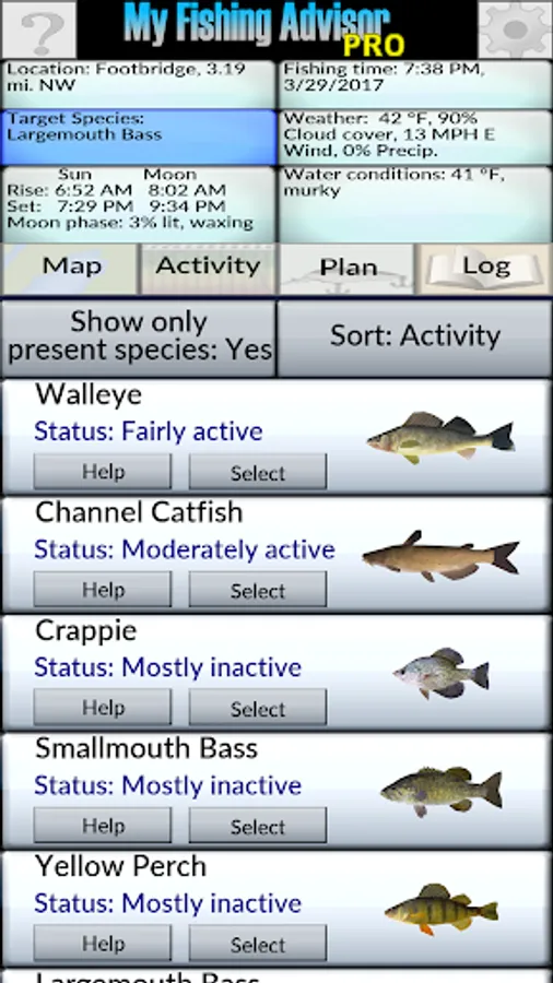 Fishing success isn't a question luck - it's about making the right decisions. Depending on the time of year, the location, the weather and water conditions, you need to pick the right structure, cover and water depth for your target species. Then you need to choose the right lure or bait and technique to catch those fish in that situation. This app will help you do just that.