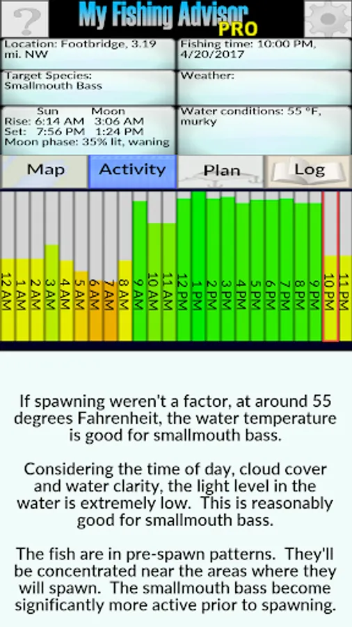 Like a fishing guide this app will consider many factors that affect fish behavior in order to predict where they will be and how actively they’ll be feeding.