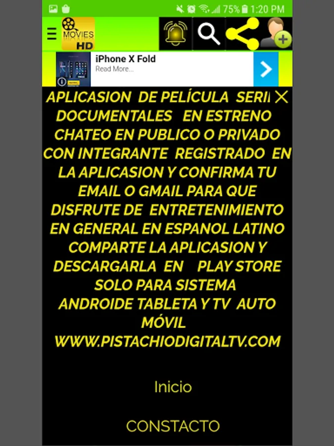 PISTACHO DIGITAL TV APLICASION DE PELÍCULA,SERIES,DOCUMENTALES DE ENTRETENIMIENTO EN GENERAL PARA TODA LA FAMILIA Y AMIGOS DESCARGA LA APLICASION Y REGISTRASTE PARA QUE DISFRUTE DE NUEVOS ESTRENOS 2021 TAN BIEN INCLUYE UNA SALA DE CHATEO EN PUBLICO O PRIVADO Y UNA SALA DE BLOC DE NOTICIA DE NUEVOS CONTENIDOS PARA MAS INFORMASION VISITA NUESTRA PAGINA WEB O REDES SOCIALES QUE ES PERA DESCARGA LA APLICASION ES GRATIS. https://www.pistachiodigitaltv.com/ https://www.facebook.com/Pistachiodigitaltv https://www.instagram.com/pistacho_digital_tv/ https://www.youtube.com/channel/UCJbVqNM6Pelk7Yqu3wG-53w