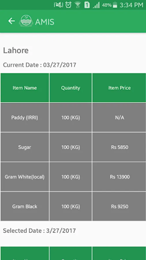 Agriculture Management Information System Punjab application provides daily prices of accomodoties available in market of different cities.