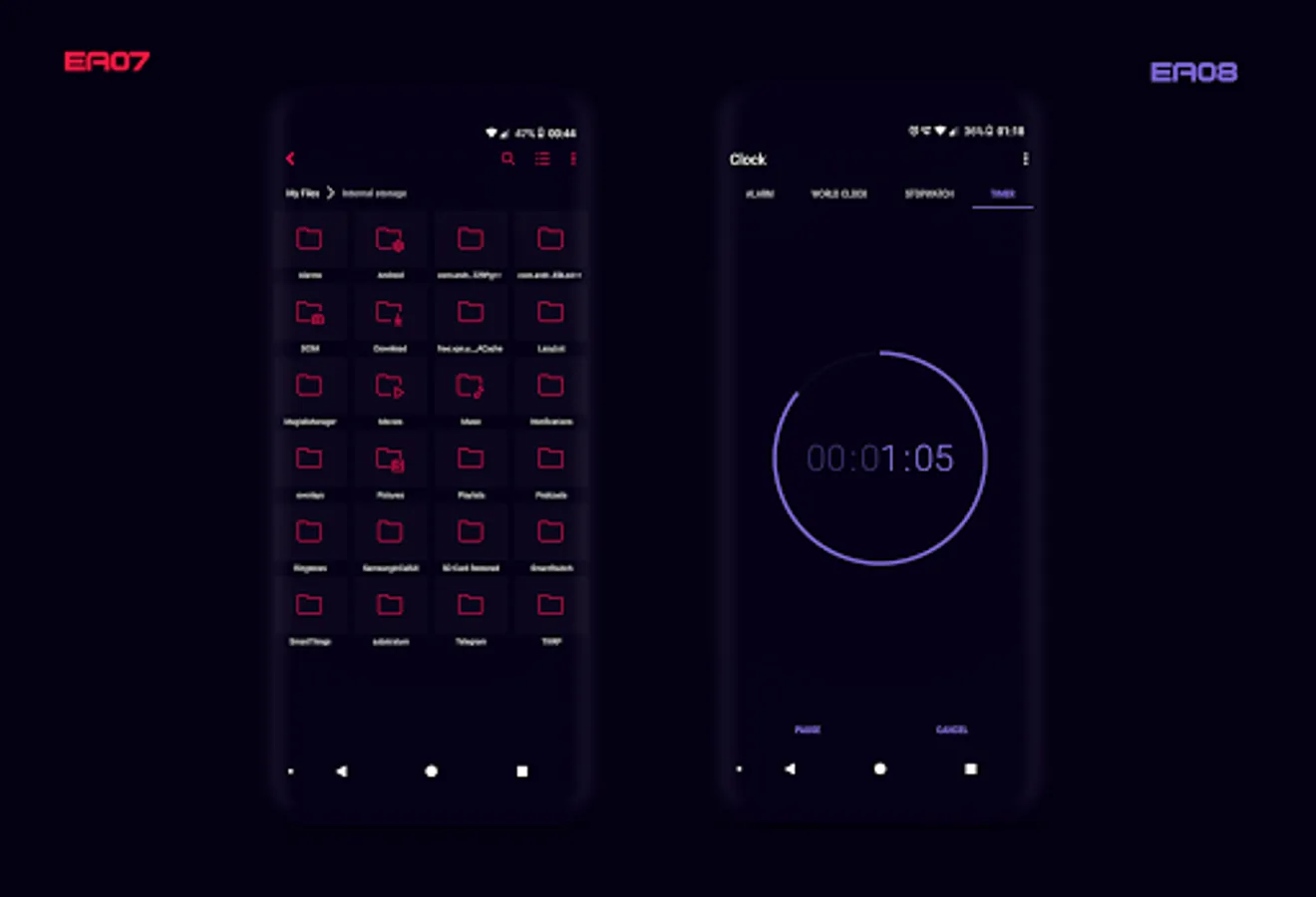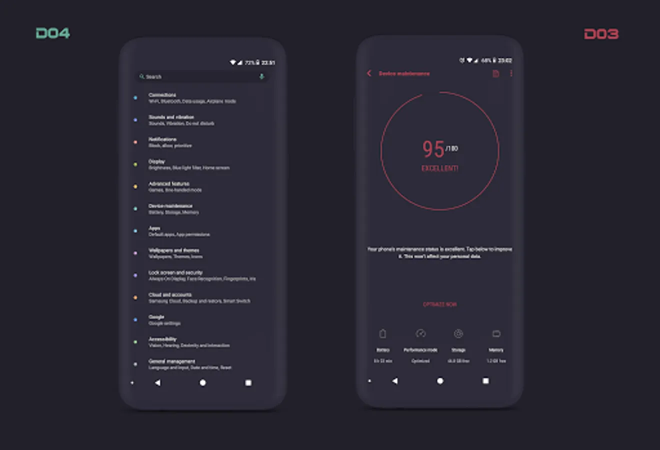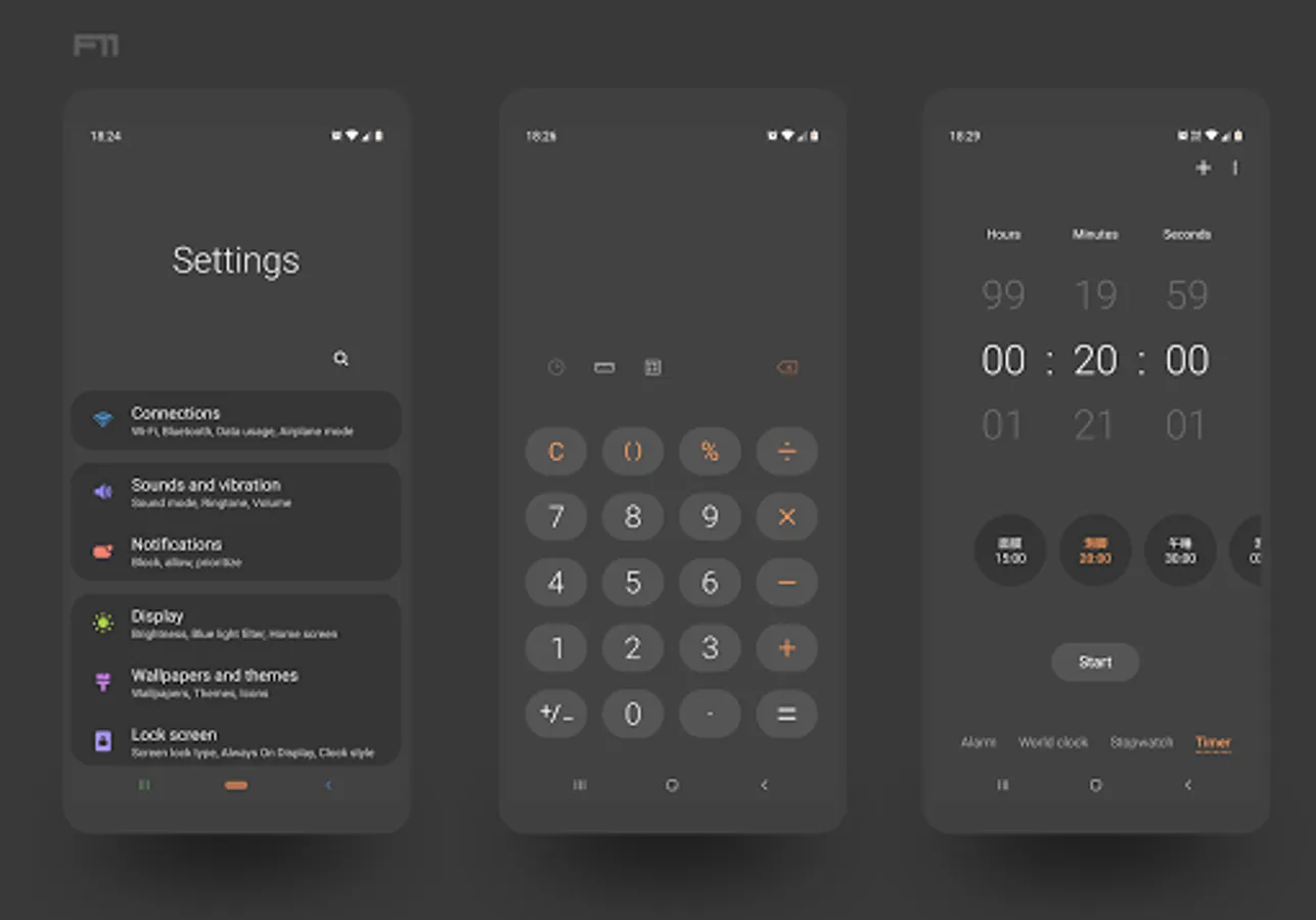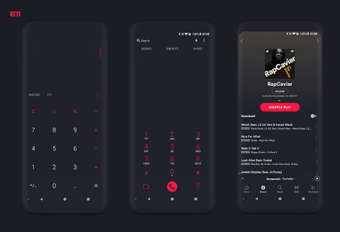 Pitch-black S is the result of perfecting the art of materialism, considering the depths of minimalism and playing around with the most vibrant color combinations. As the name of the theme suggests, “PitchBlack” is a “dark” theme that works with dark and/or black backgrounds (the users get to choose!) which makes it battery-friendly for AMOLED devices.